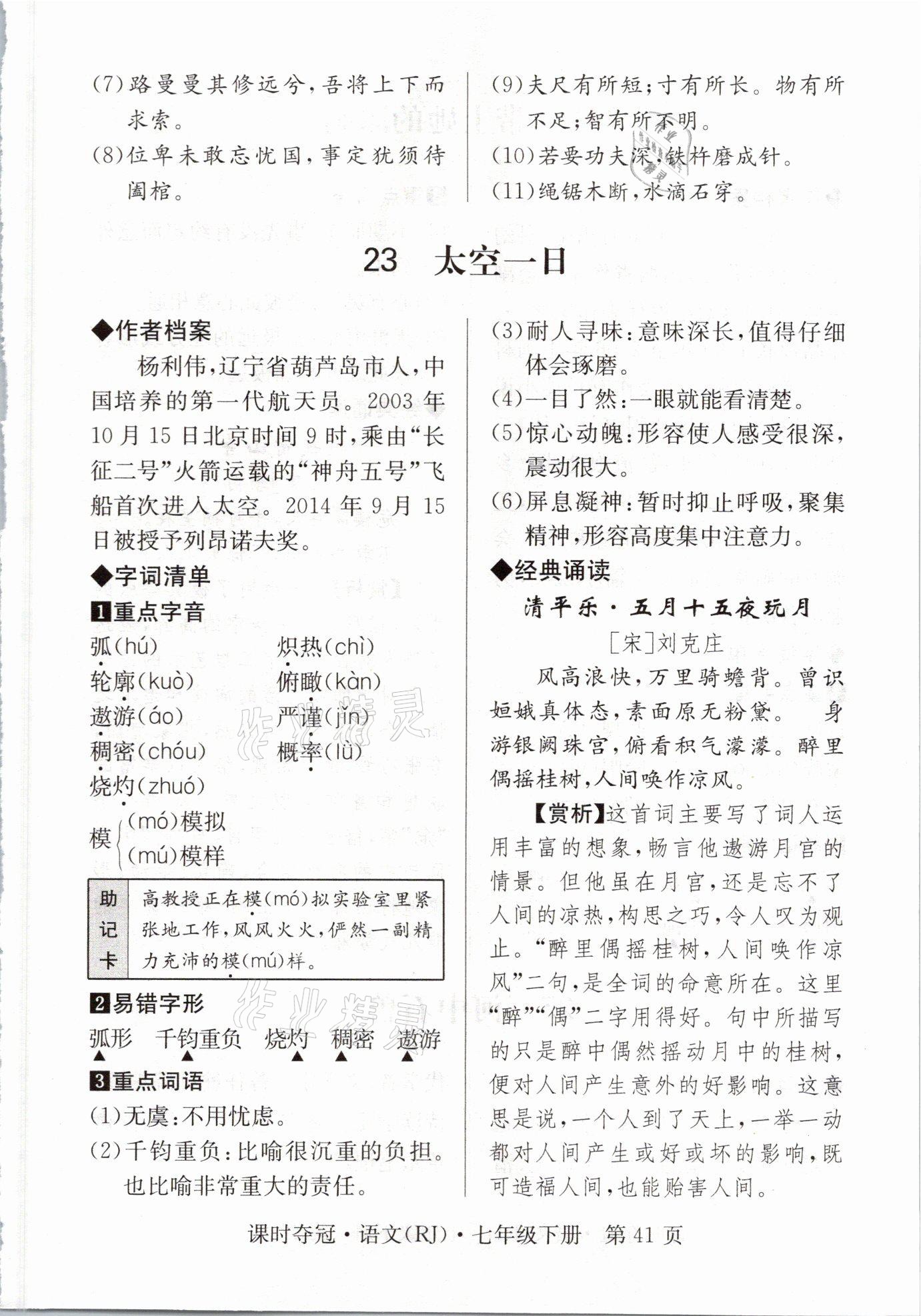 注:目前有些书本章节名称可能整理的还不是很完善,但都是按照顺序排列的,请同学们按照顺序仔细查找。练习册 2021年课时夺冠七年级语文下册人教版孝感专版 答案主要是用来给同学们做完题方便对答案用的,请勿直接抄袭。