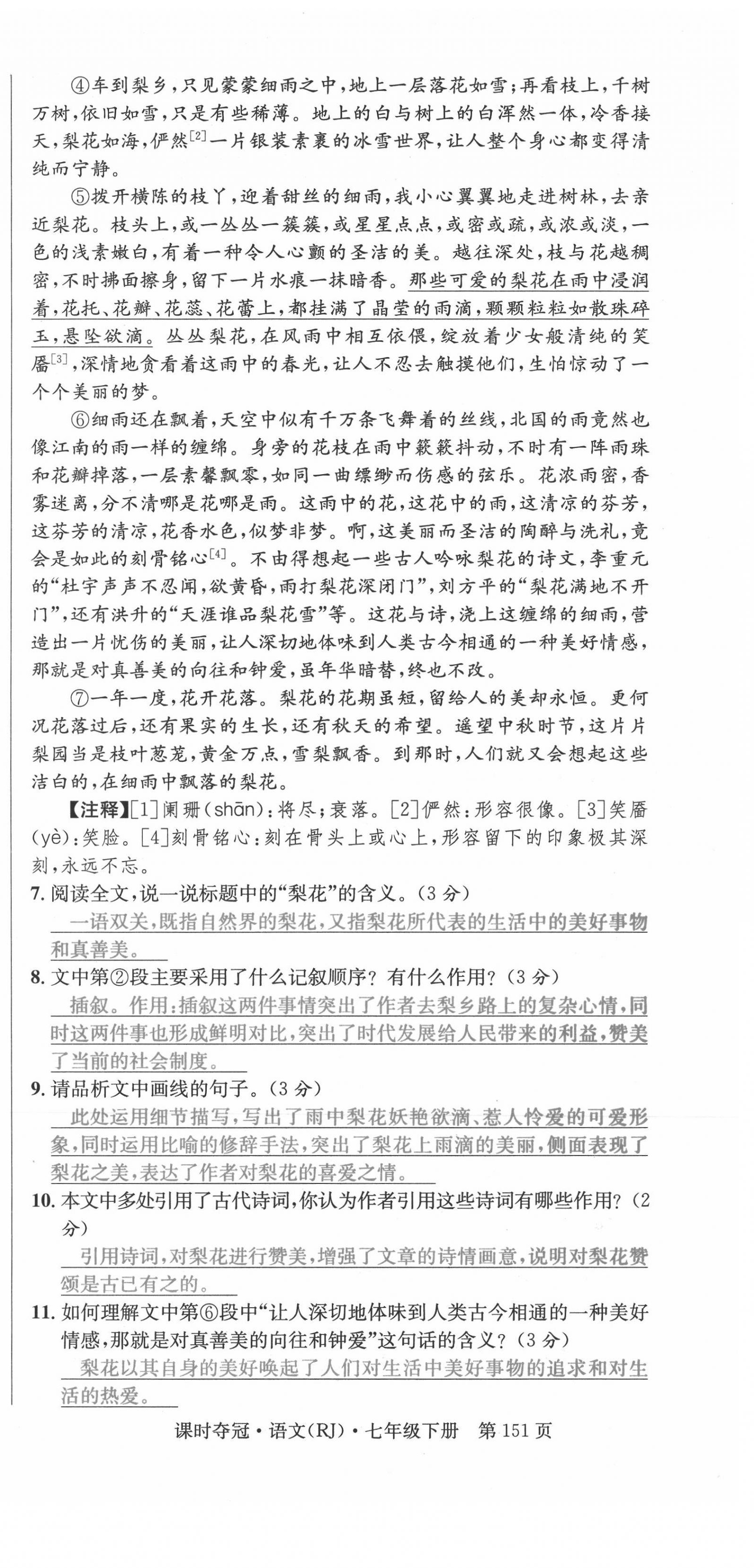 2021年课时夺冠七年级语文下册人教版孝感专版