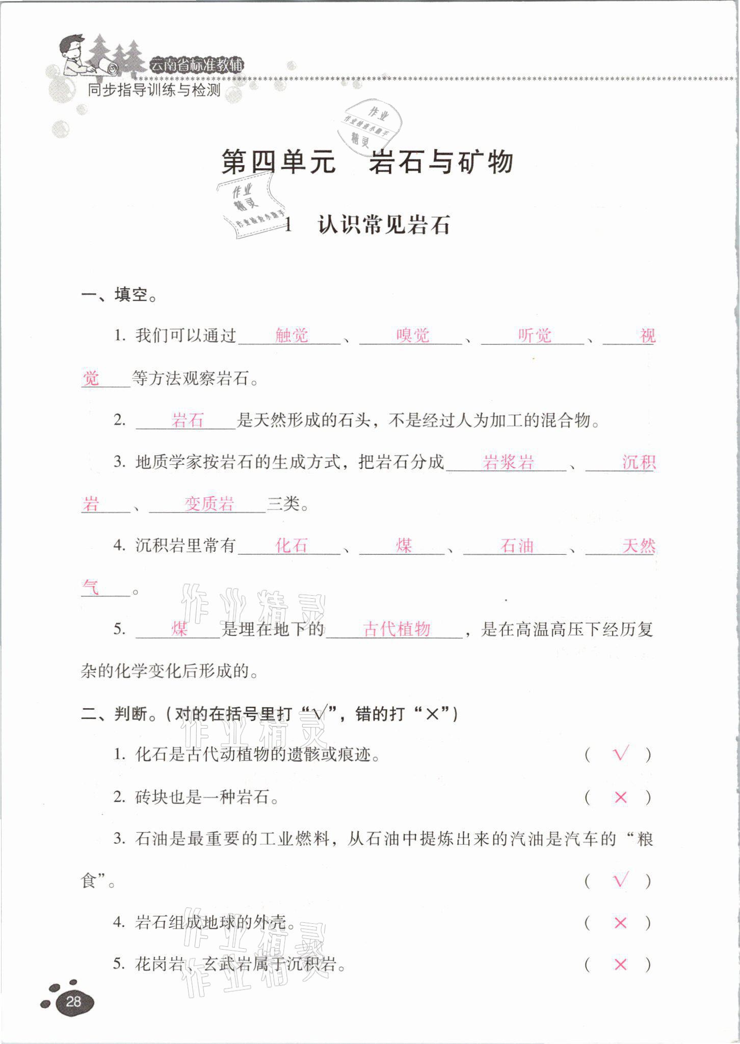2021年云南省标准教辅同步指导训练与检测五年级科学下册苏教版