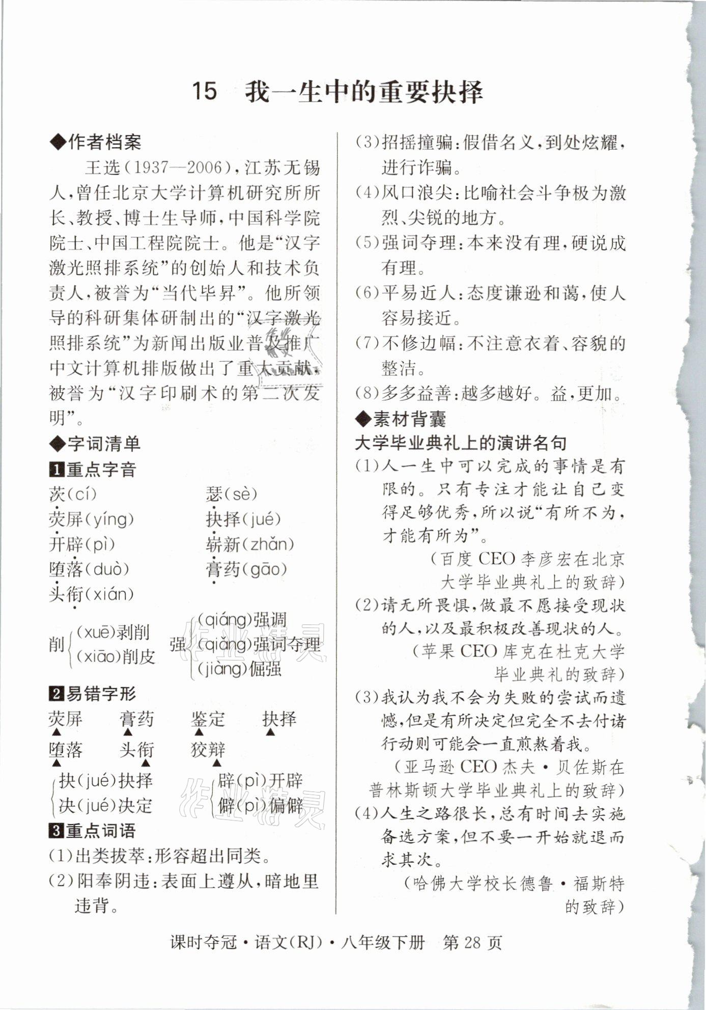 2021年课时夺冠八年级语文下册人教版孝感专版
