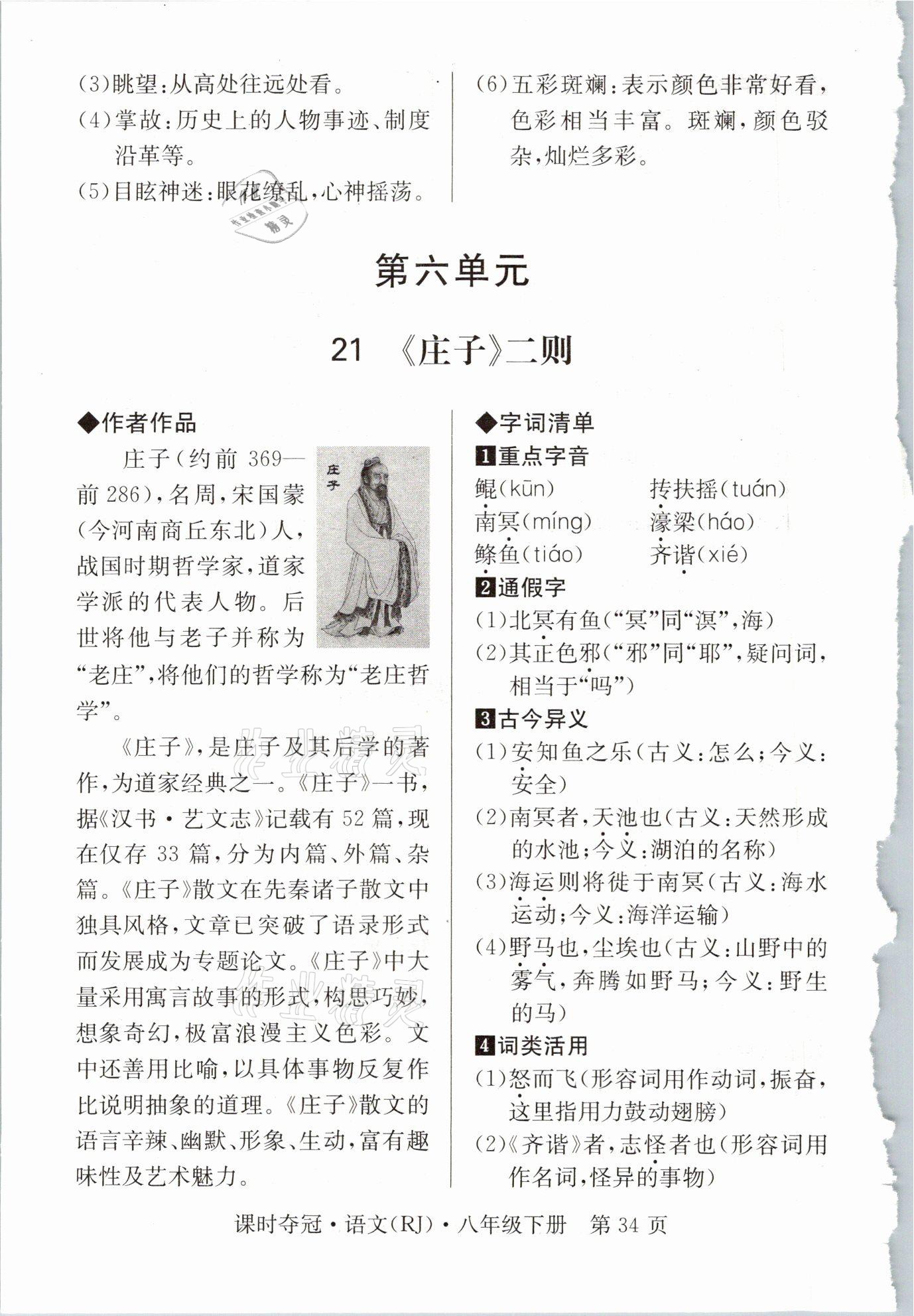 注:目前有些书本章节名称可能整理的还不是很完善,但都是按照顺序排列的,请同学们按照顺序仔细查找。练习册 2021年课时夺冠八年级语文下册人教版孝感专版 答案主要是用来给同学们做完题方便对答案用的,请勿直接抄袭。