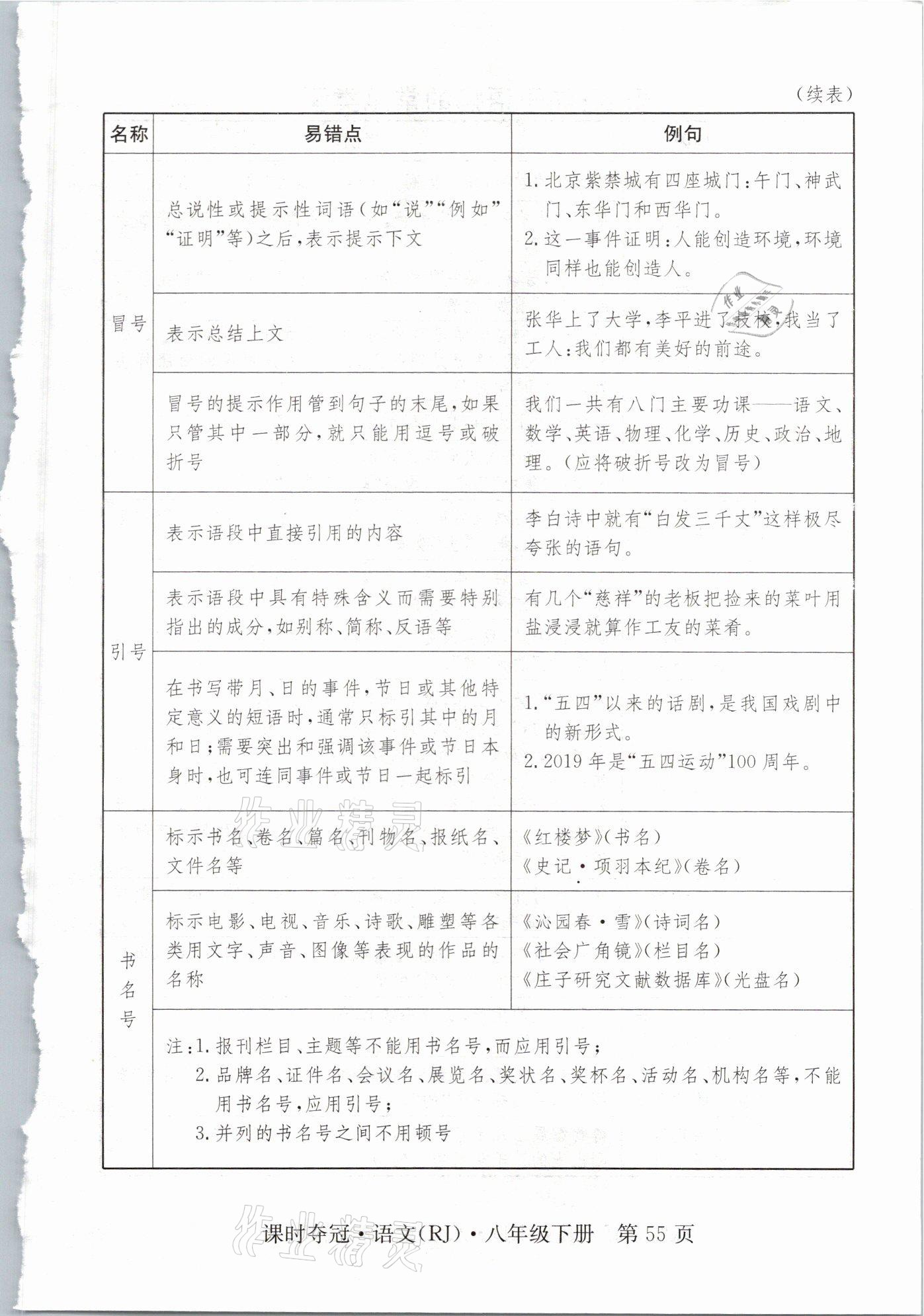2021年课时夺冠八年级语文下册人教版孝感专版