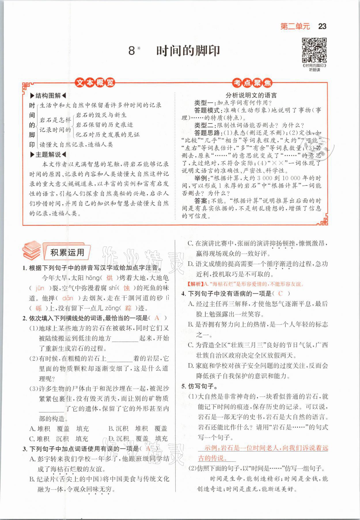 2021年课时夺冠八年级语文下册人教版孝感专版