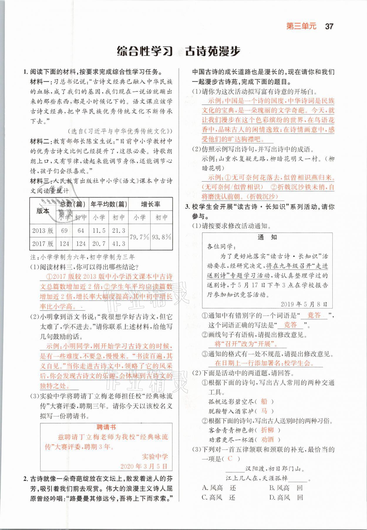 2021年课时夺冠八年级语文下册人教版孝感专版