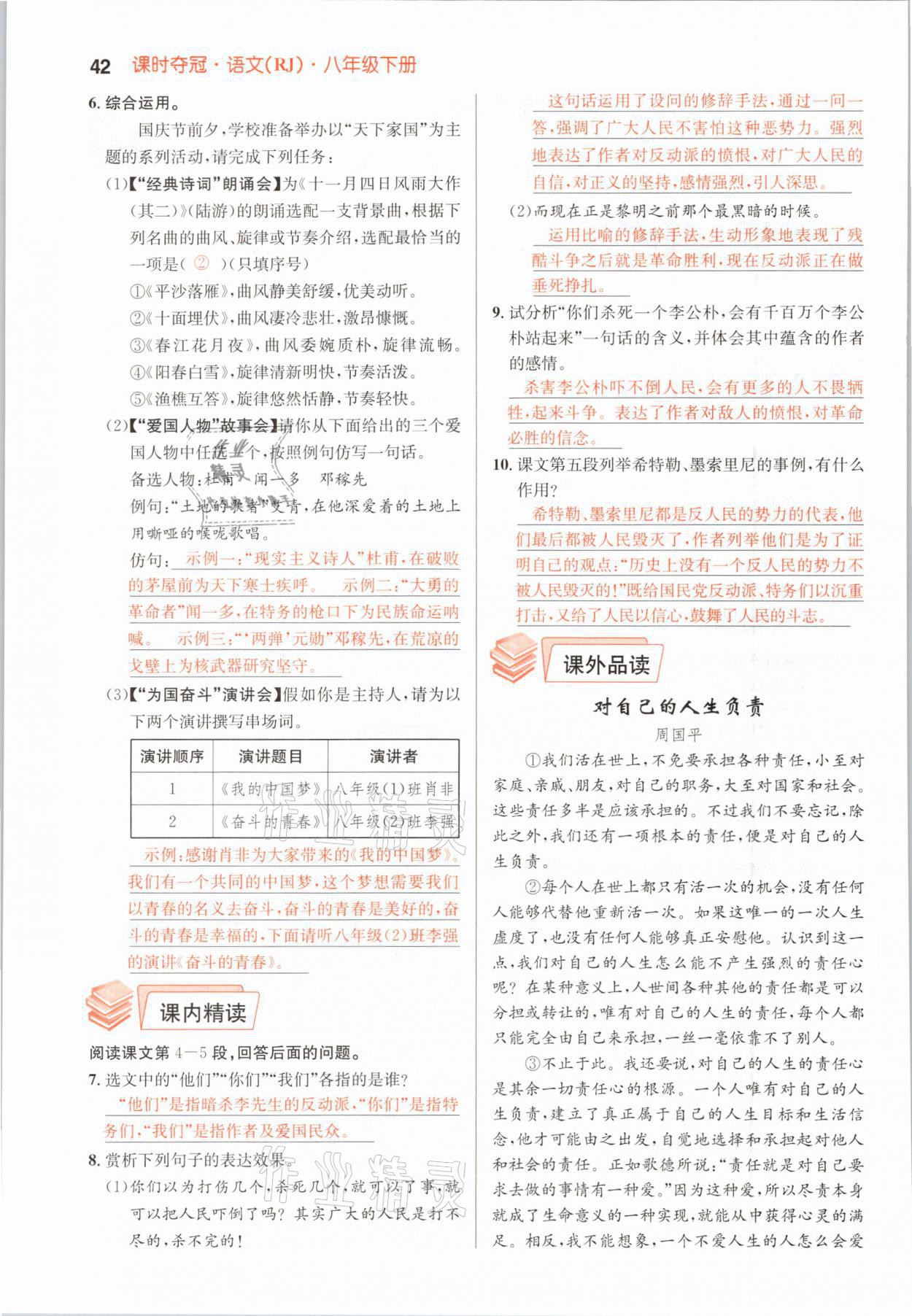 2021年课时夺冠八年级语文下册人教版孝感专版