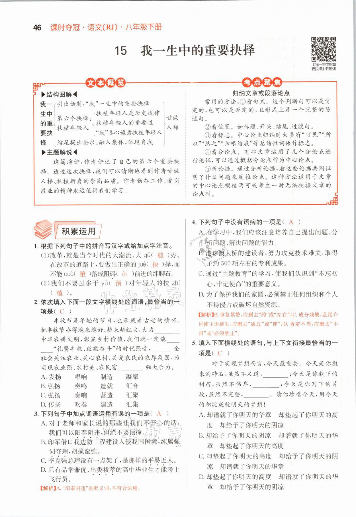 2021年课时夺冠八年级语文下册人教版孝感专版