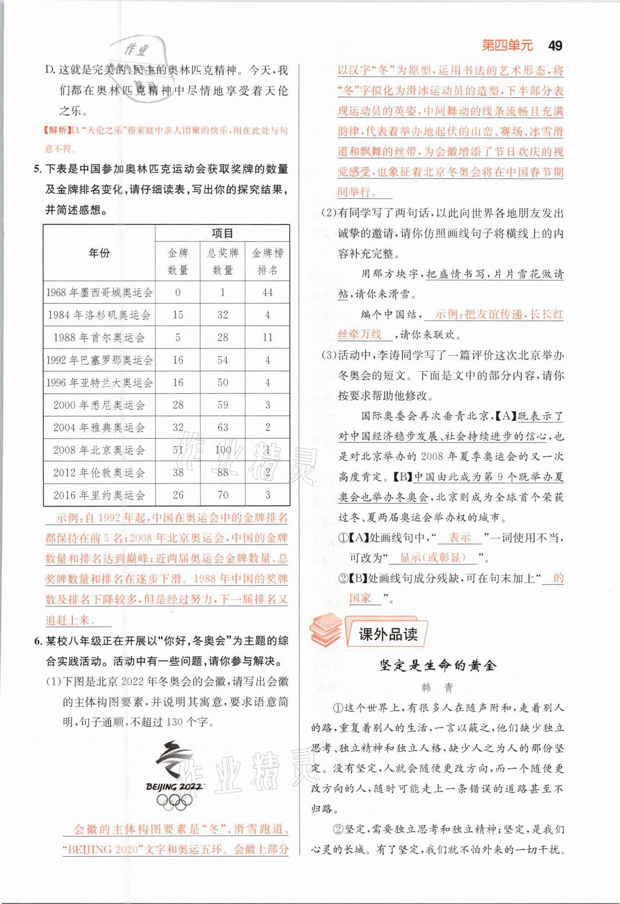 2021年课时夺冠八年级语文下册人教版孝感专版
