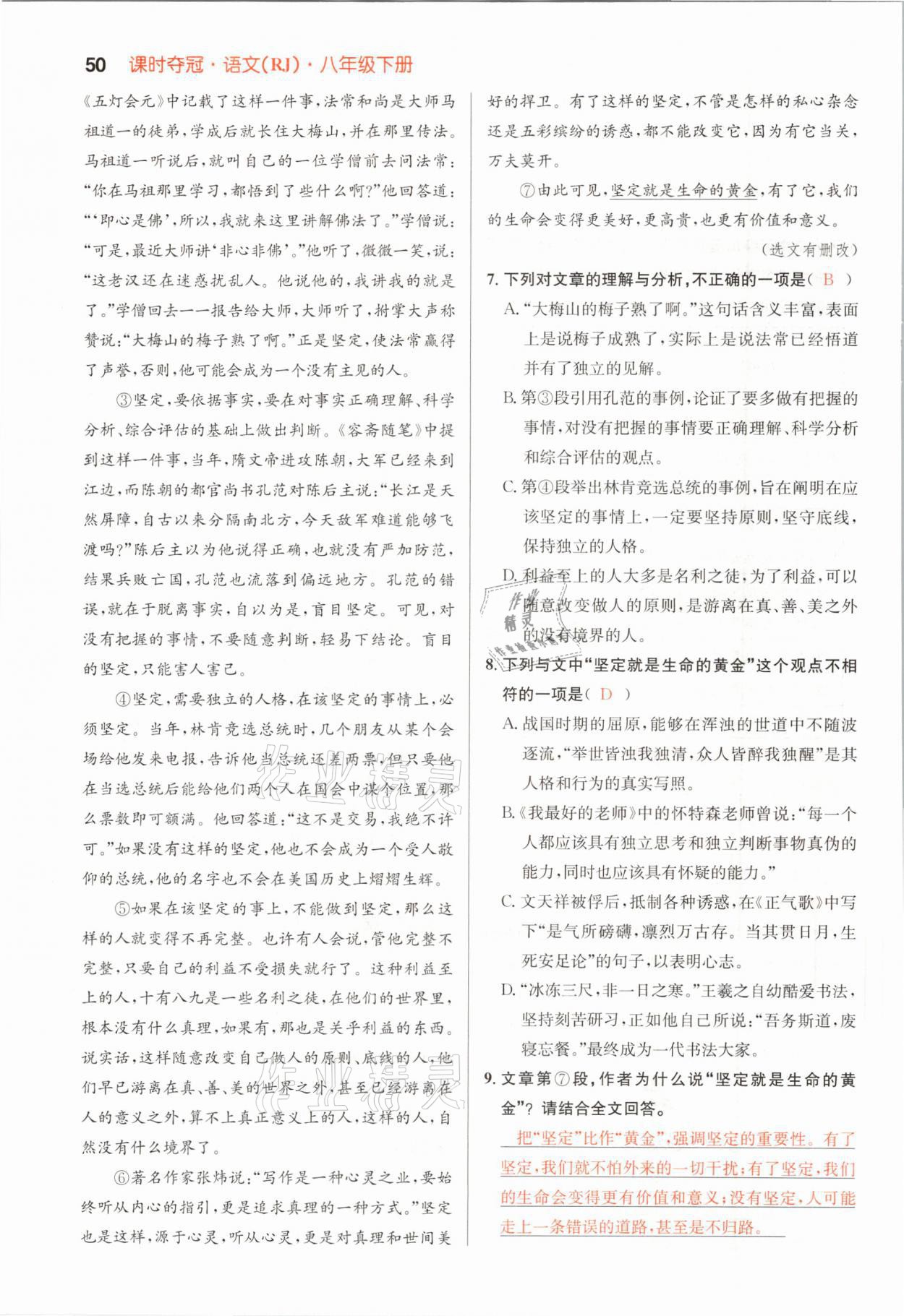 2021年课时夺冠八年级语文下册人教版孝感专版
