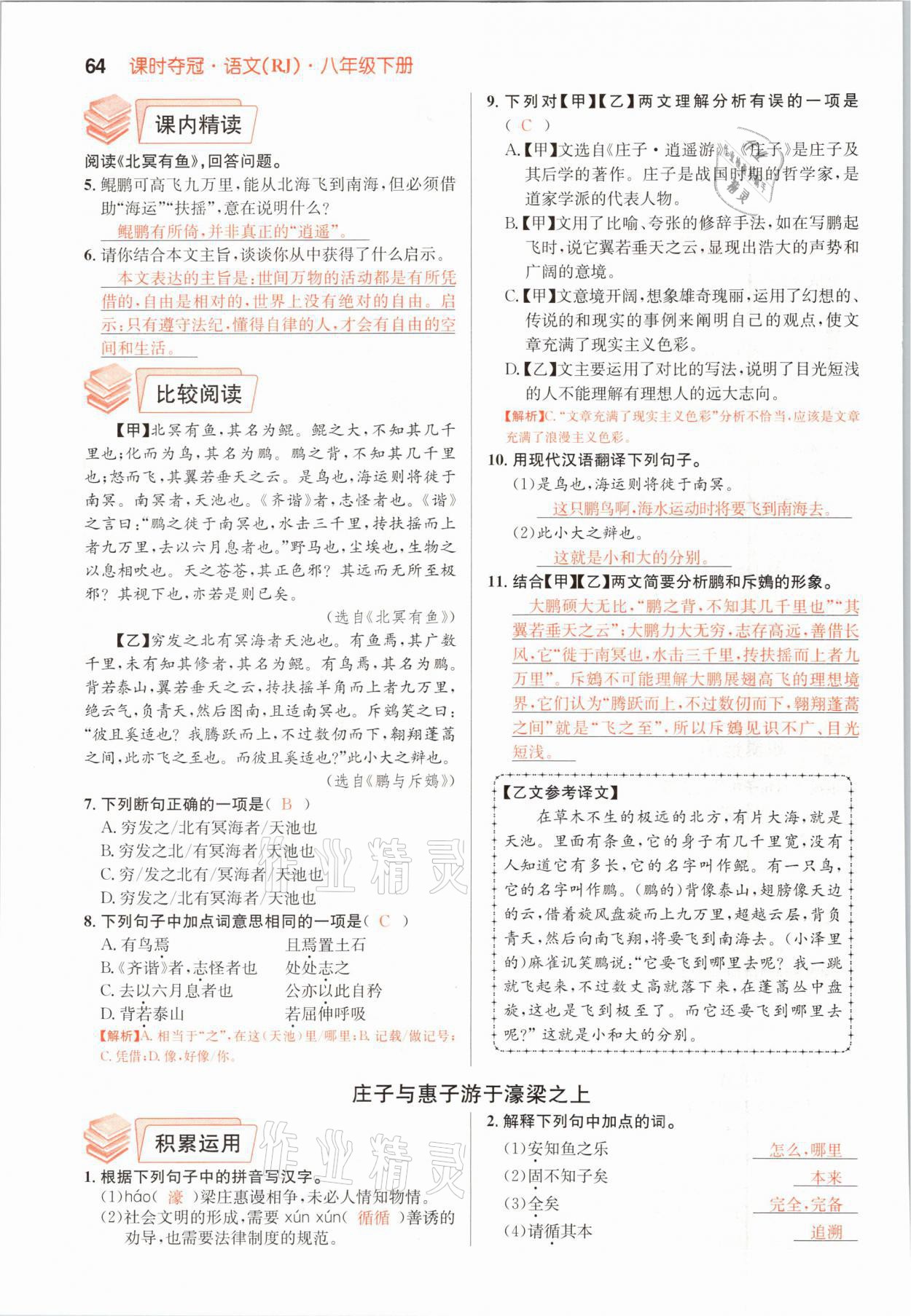 注:目前有些书本章节名称可能整理的还不是很完善,但都是按照顺序排列的,请同学们按照顺序仔细查找。练习册 2021年课时夺冠八年级语文下册人教版孝感专版 答案主要是用来给同学们做完题方便对答案用的,请勿直接抄袭。
