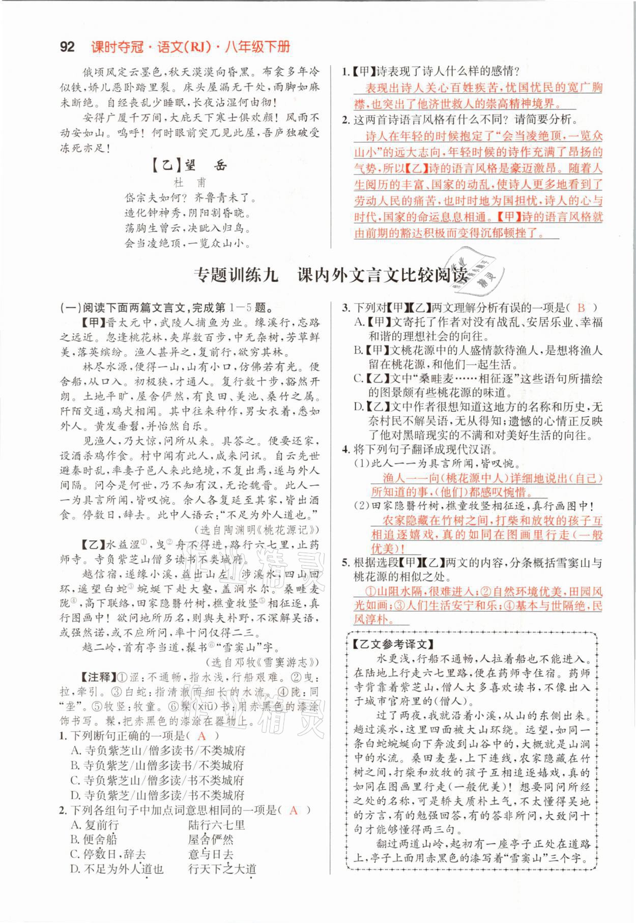 2021年课时夺冠八年级语文下册人教版孝感专版