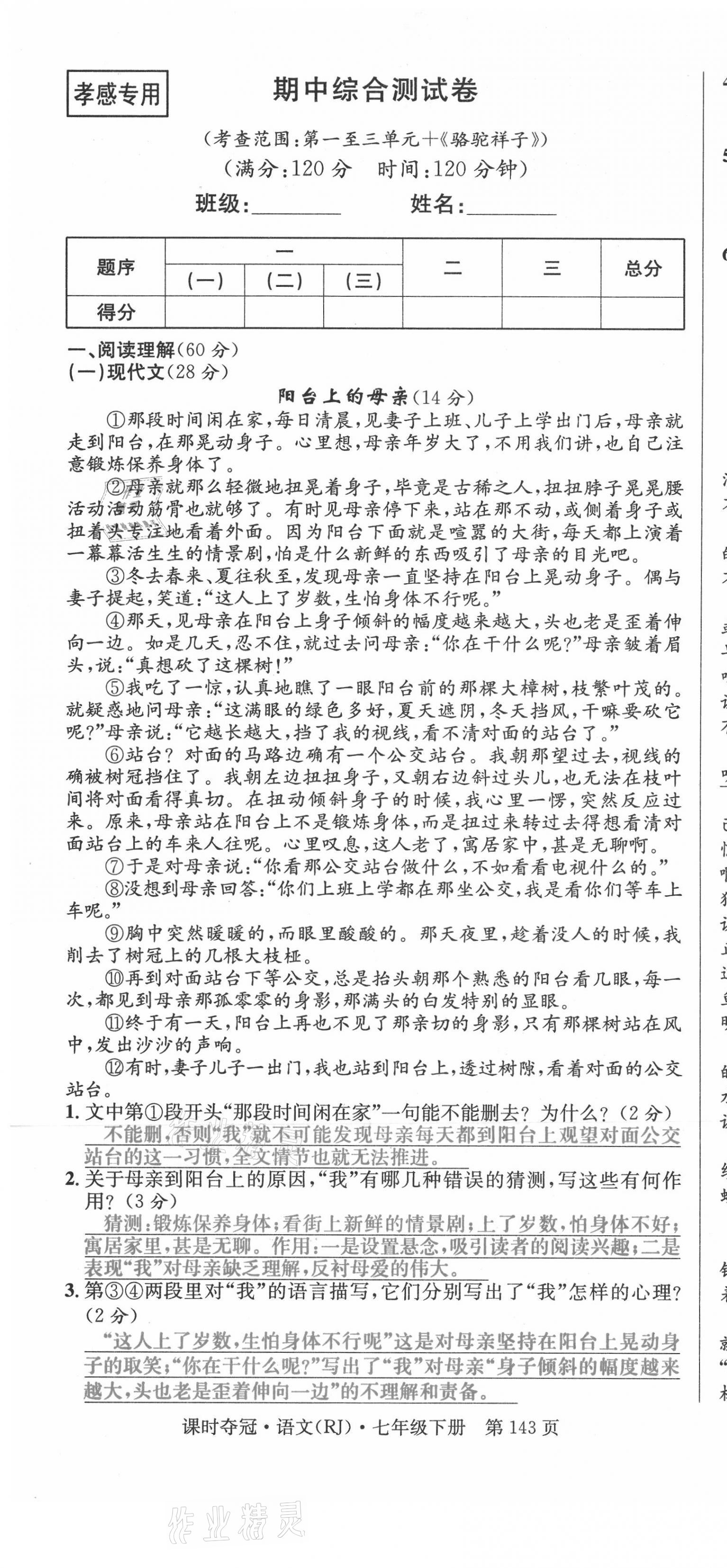 2021年课时夺冠八年级语文下册人教版孝感专版