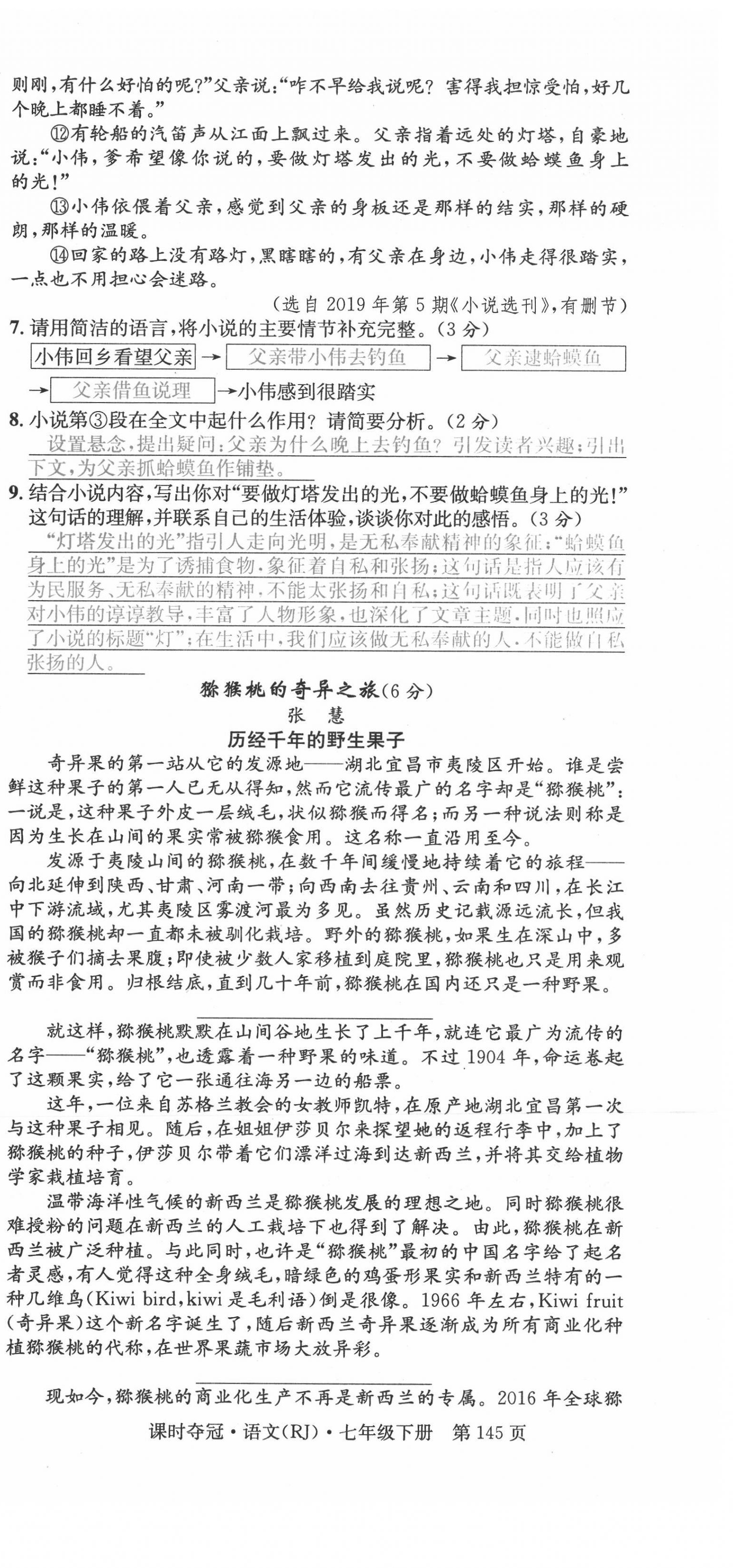 注:目前有些书本章节名称可能整理的还不是很完善,但都是按照顺序排列的,请同学们按照顺序仔细查找。练习册 2021年课时夺冠八年级语文下册人教版孝感专版 答案主要是用来给同学们做完题方便对答案用的,请勿直接抄袭。