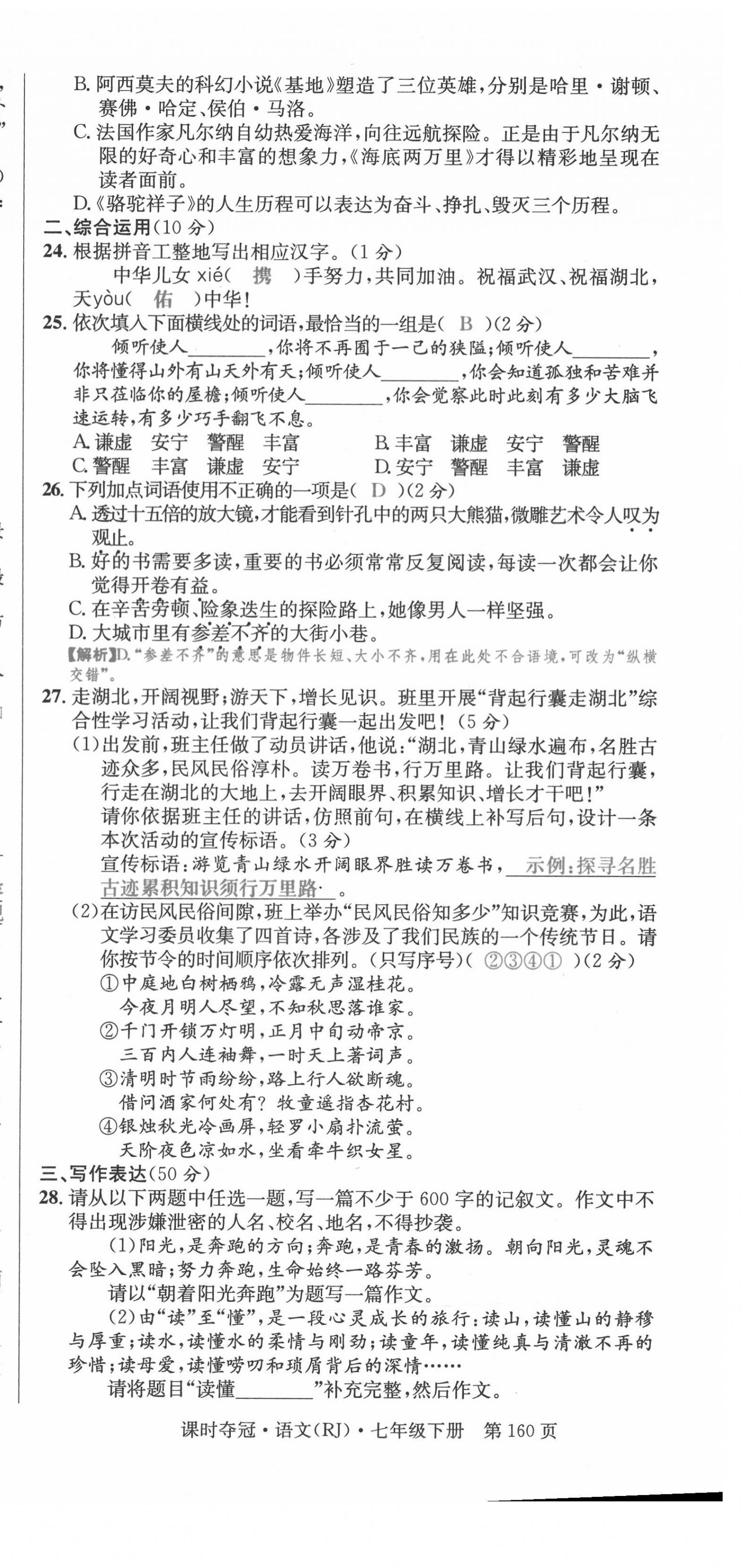 2021年课时夺冠八年级语文下册人教版孝感专版