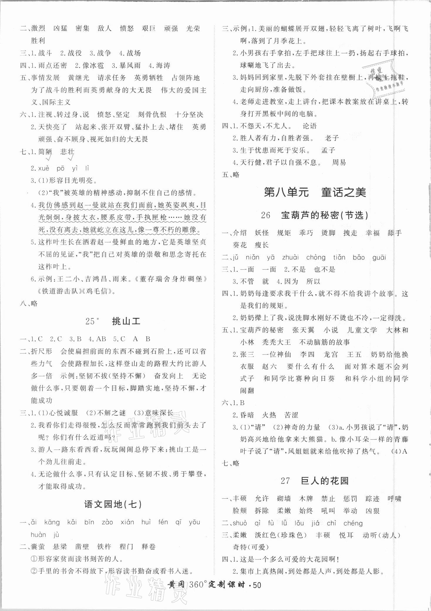 2021年黄冈360定制课时四年级语文下册人教版广东专版
