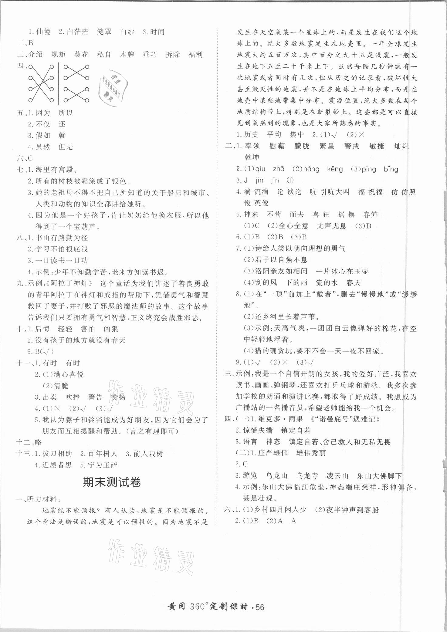 注:目前有些书本章节名称可能整理的还不是很完善,但都是按照顺序排列的,请同学们按照顺序仔细查找。练习册 2021年黄冈360定制课时四年级语文下册人教版广东专版 答案主要是用来给同学们做完题方便对答案用的,请勿直接抄袭。