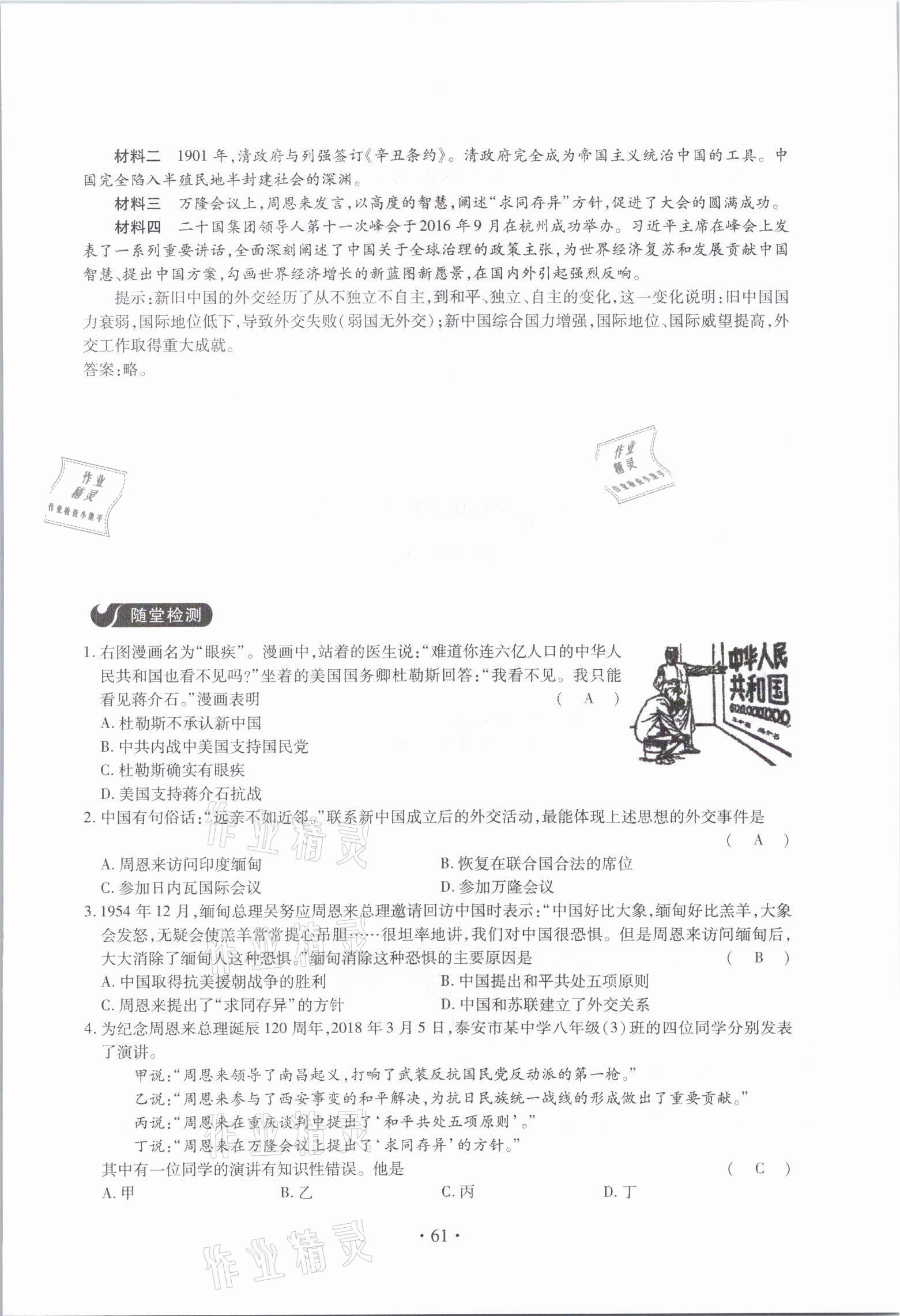 注:目前有些书本章节名称可能整理的还不是很完善,但都是按照顺序排列的,请同学们按照顺序仔细查找。练习册 2021年一课一案创新导学八年级历史下册人教版 答案主要是用来给同学们做完题方便对答案用的,请勿直接抄袭。