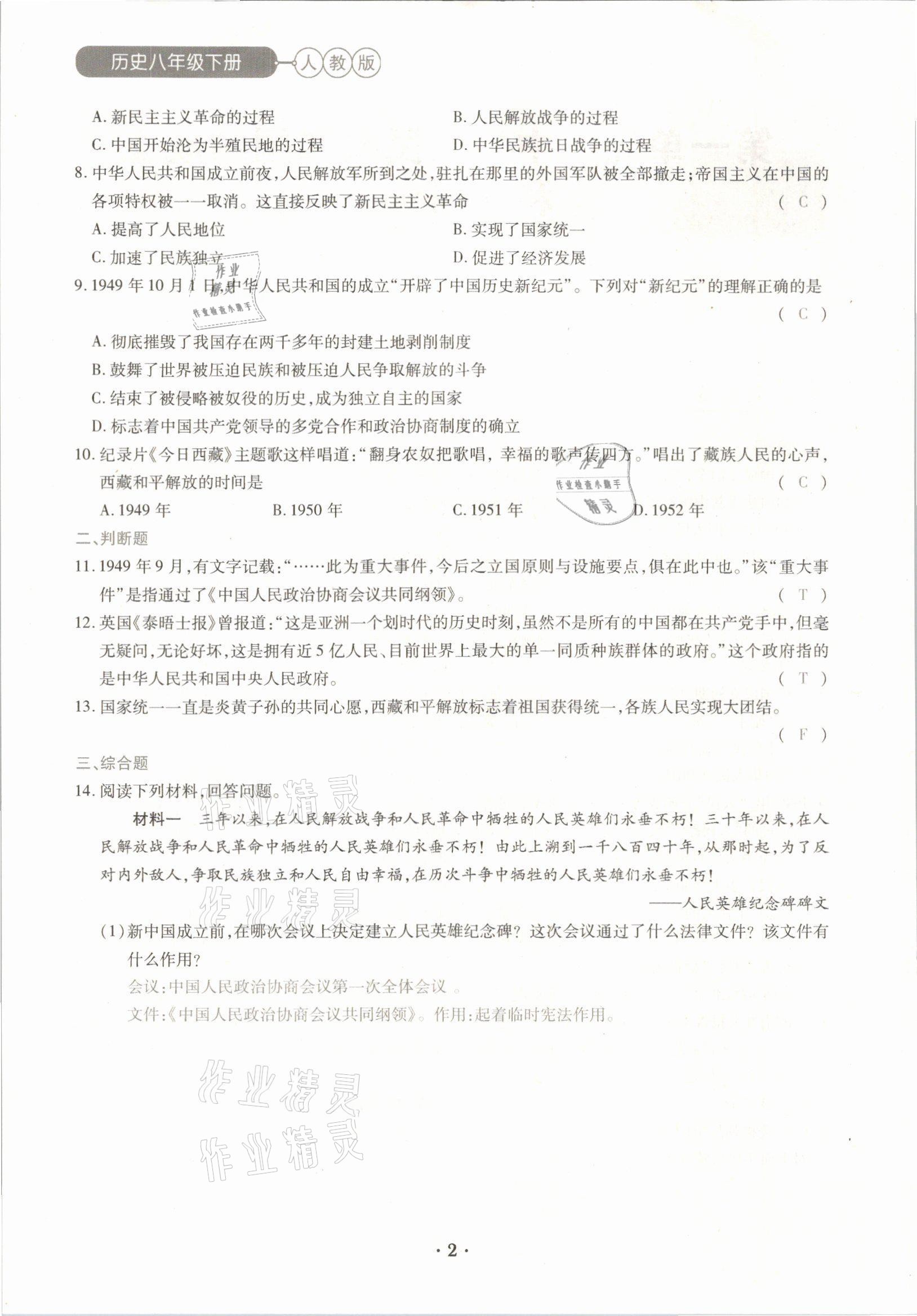 注:目前有些书本章节名称可能整理的还不是很完善,但都是按照顺序排列的,请同学们按照顺序仔细查找。练习册 2021年一课一案创新导学八年级历史下册人教版 答案主要是用来给同学们做完题方便对答案用的,请勿直接抄袭。