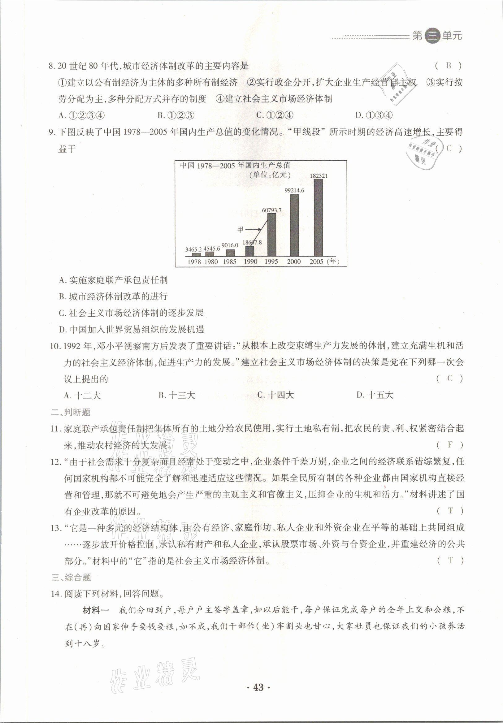 注:目前有些书本章节名称可能整理的还不是很完善,但都是按照顺序排列的,请同学们按照顺序仔细查找。练习册 2021年一课一案创新导学八年级历史下册人教版 答案主要是用来给同学们做完题方便对答案用的,请勿直接抄袭。