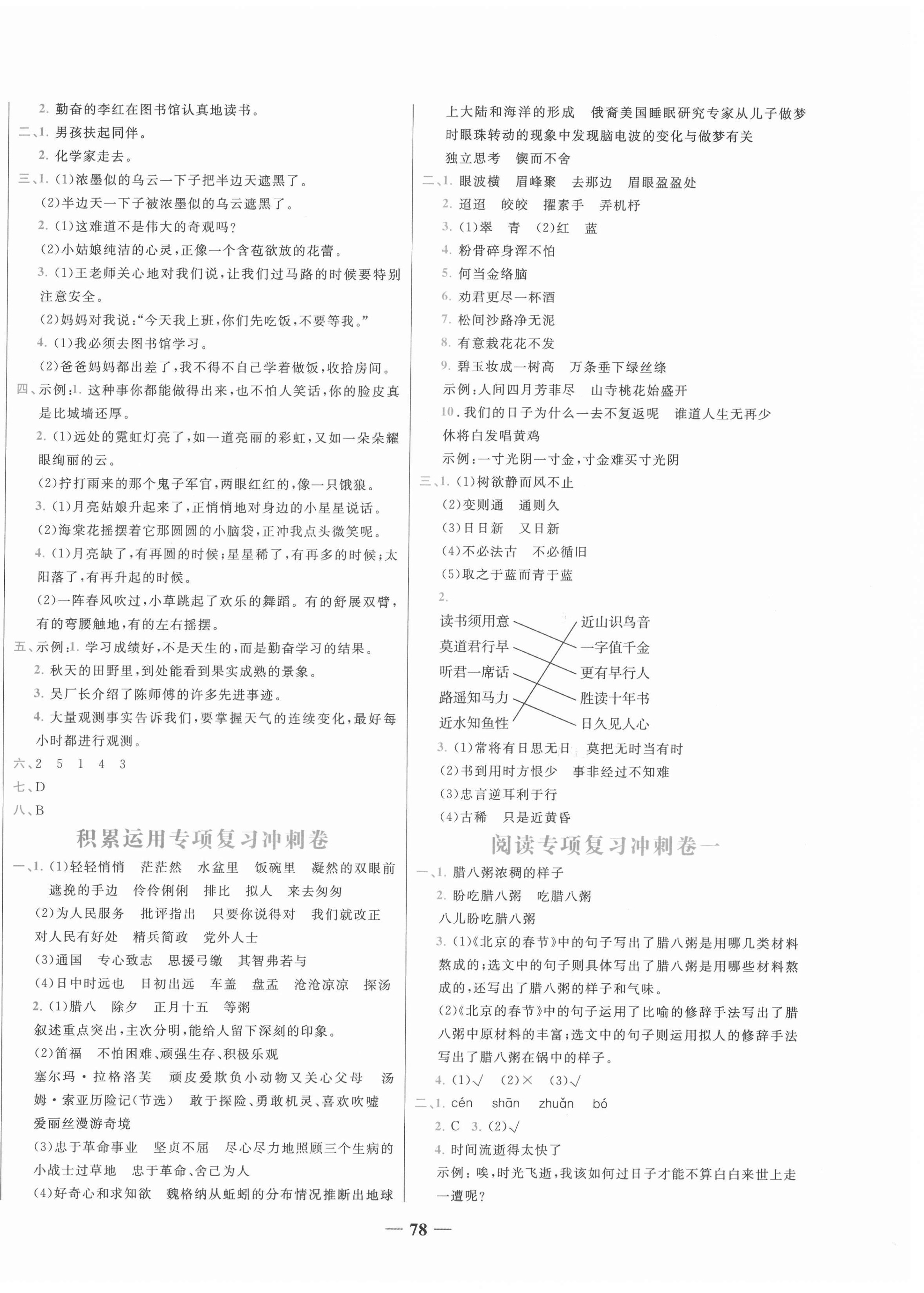 注:目前有些书本章节名称可能整理的还不是很完善,但都是按照顺序排列的,请同学们按照顺序仔细查找。练习册 2021年新题型全程检测六年级语文下册部编版山西专用 答案主要是用来给同学们做完题方便对答案用的,请勿直接抄袭。