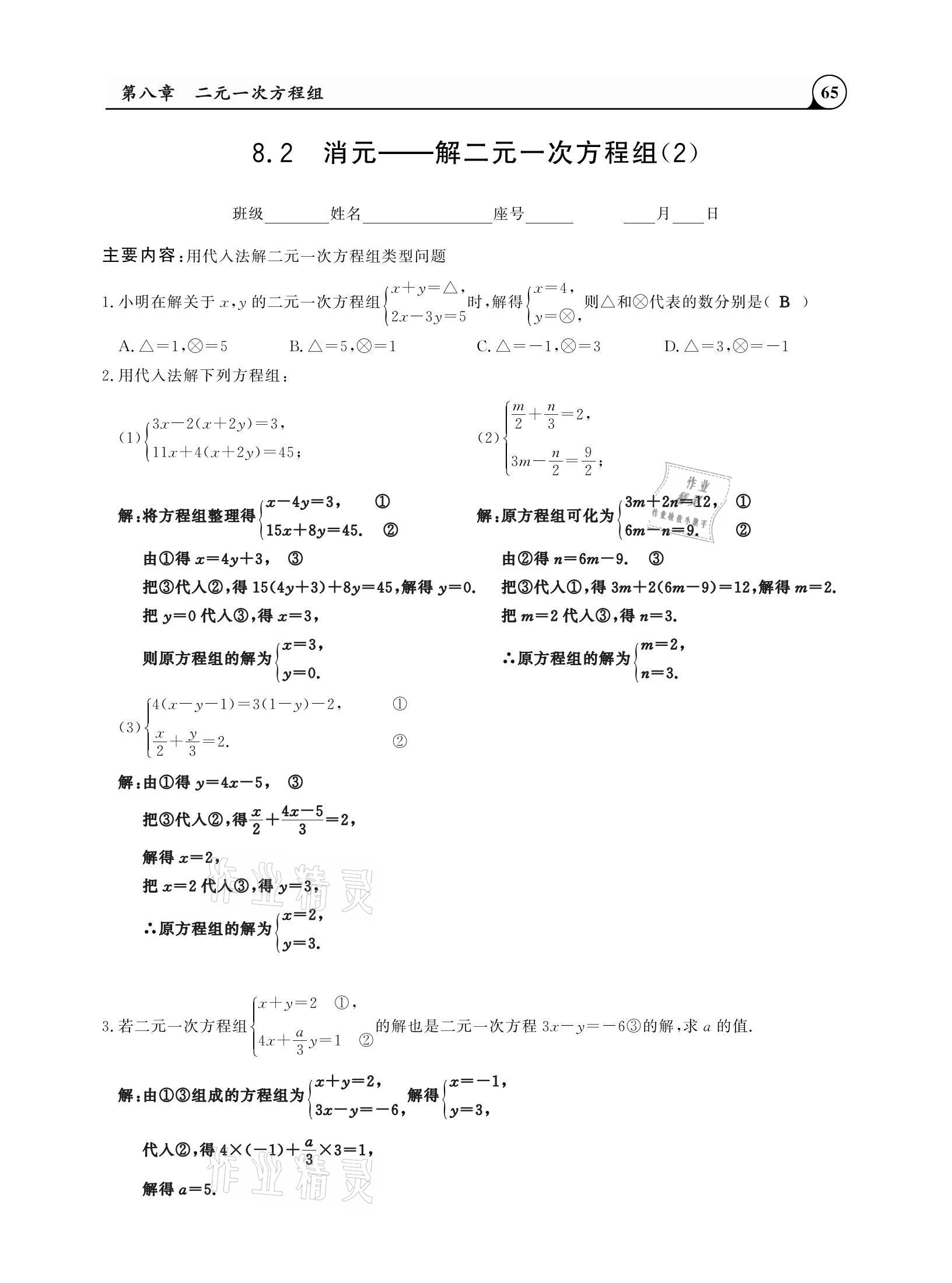 注:目前有些书本章节名称可能整理的还不是很完善,但都是按照顺序排列的,请同学们按照顺序仔细查找。练习册 2021年三点一测课堂作业本七年级数学下册人教版 答案主要是用来给同学们做完题方便对答案用的,请勿直接抄袭。