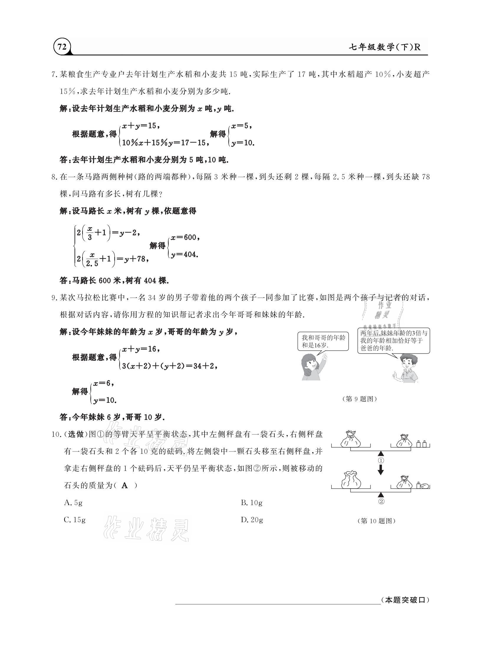 注:目前有些书本章节名称可能整理的还不是很完善,但都是按照顺序排列的,请同学们按照顺序仔细查找。练习册 2021年三点一测课堂作业本七年级数学下册人教版 答案主要是用来给同学们做完题方便对答案用的,请勿直接抄袭。