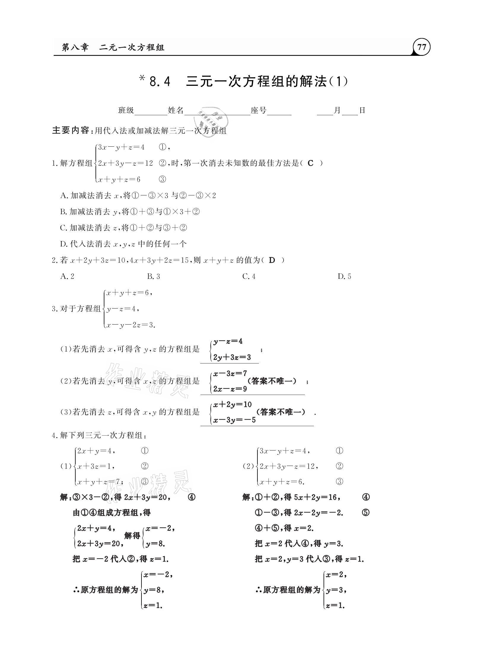 注:目前有些书本章节名称可能整理的还不是很完善,但都是按照顺序排列的,请同学们按照顺序仔细查找。练习册 2021年三点一测课堂作业本七年级数学下册人教版 答案主要是用来给同学们做完题方便对答案用的,请勿直接抄袭。