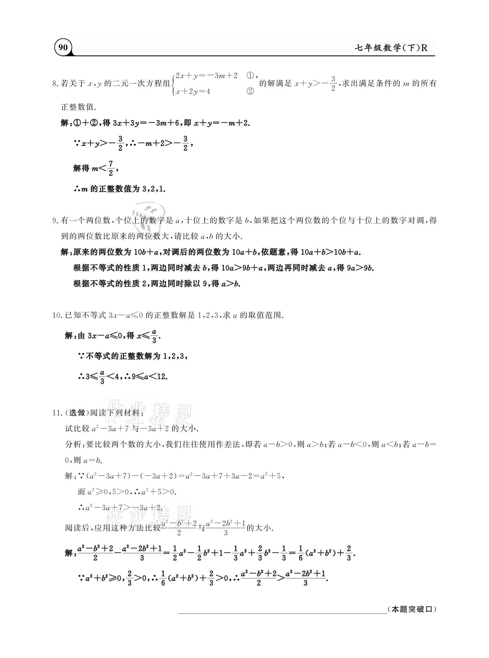 注:目前有些书本章节名称可能整理的还不是很完善,但都是按照顺序排列的,请同学们按照顺序仔细查找。练习册 2021年三点一测课堂作业本七年级数学下册人教版 答案主要是用来给同学们做完题方便对答案用的,请勿直接抄袭。