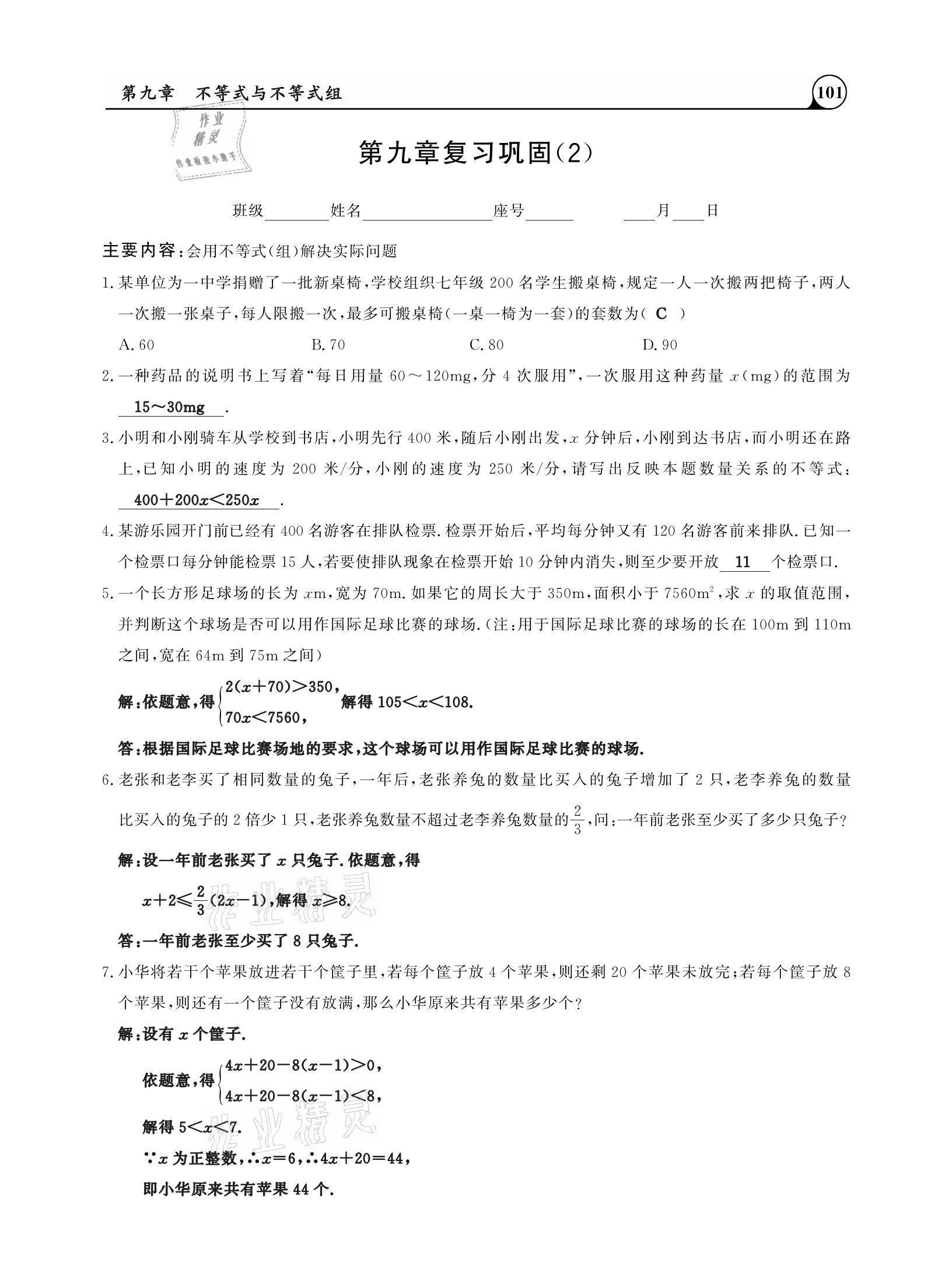 注:目前有些书本章节名称可能整理的还不是很完善,但都是按照顺序排列的,请同学们按照顺序仔细查找。练习册 2021年三点一测课堂作业本七年级数学下册人教版 答案主要是用来给同学们做完题方便对答案用的,请勿直接抄袭。
