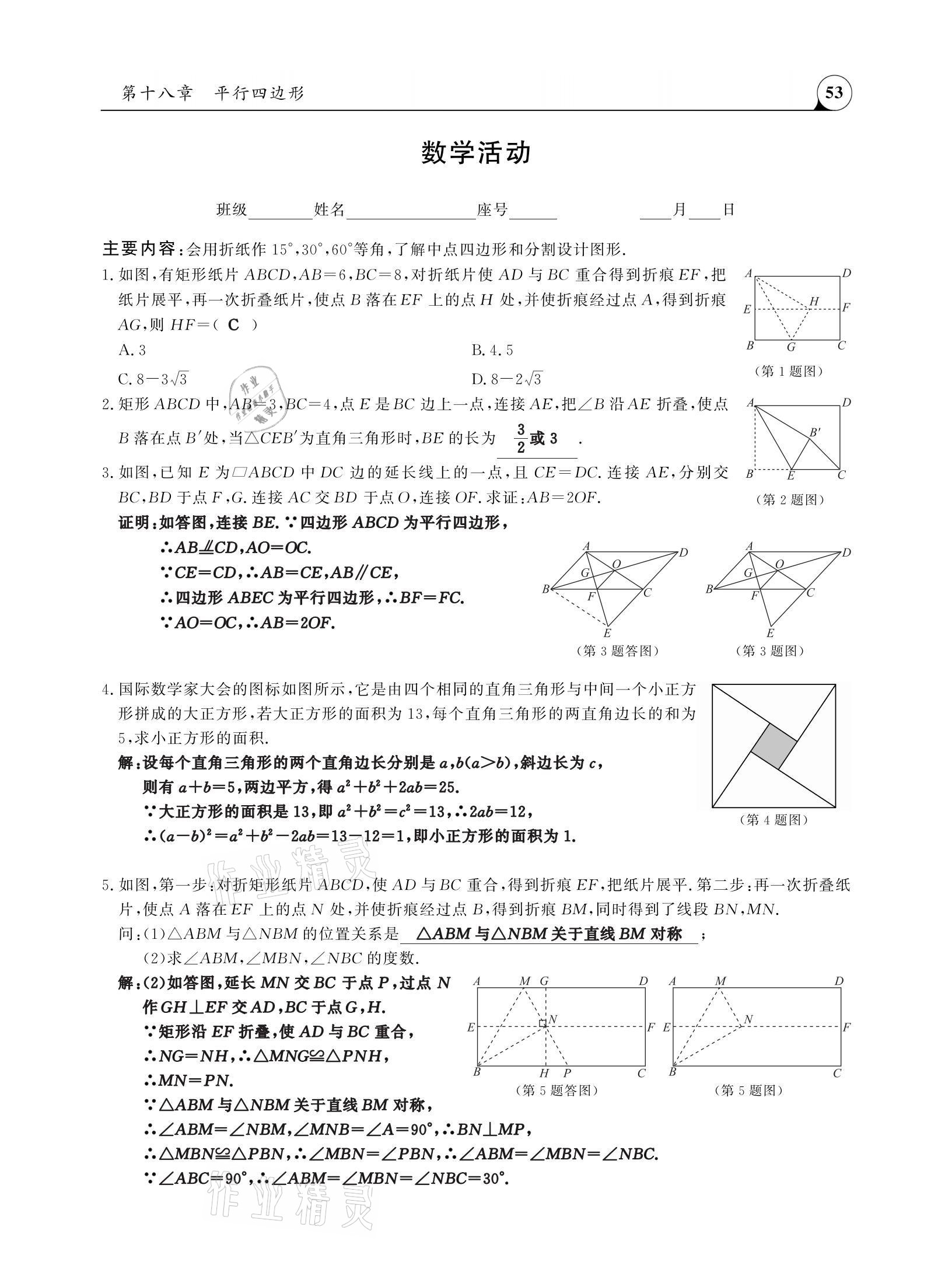 注:目前有些书本章节名称可能整理的还不是很完善,但都是按照顺序排列的,请同学们按照顺序仔细查找。练习册 2021年三点一测课堂作业本八年级数学下册人教版 答案主要是用来给同学们做完题方便对答案用的,请勿直接抄袭。