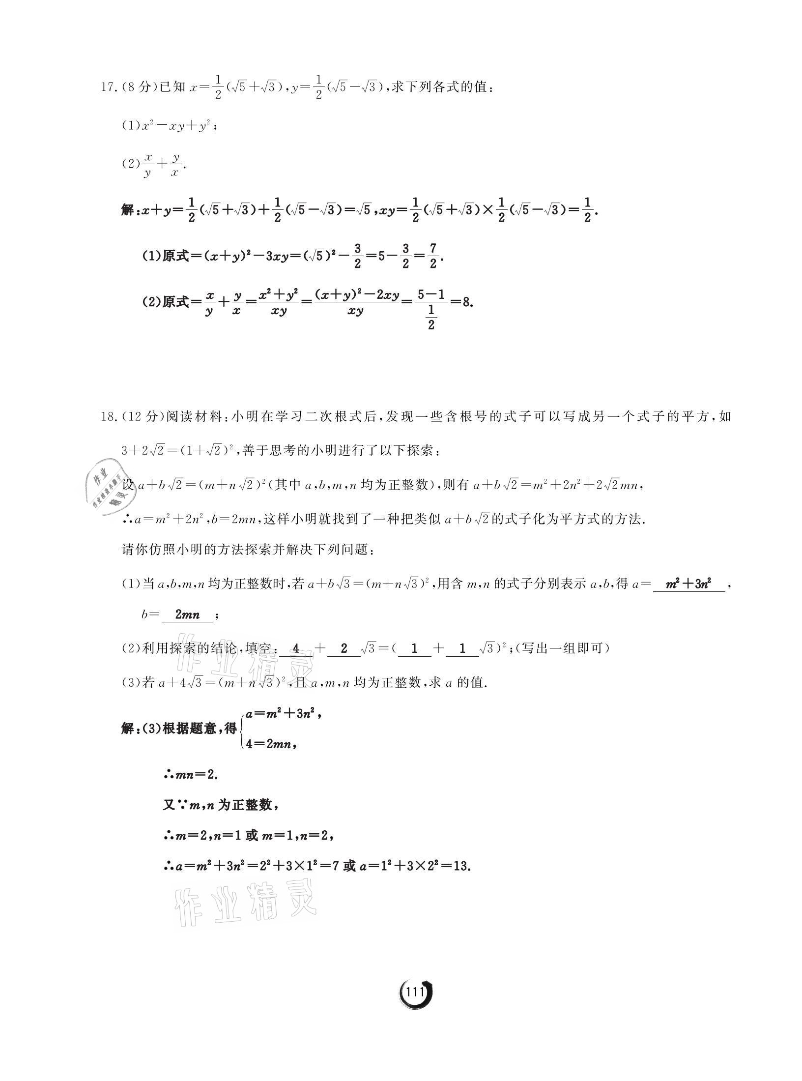 注:目前有些书本章节名称可能整理的还不是很完善,但都是按照顺序排列的,请同学们按照顺序仔细查找。练习册 2021年三点一测课堂作业本八年级数学下册人教版 答案主要是用来给同学们做完题方便对答案用的,请勿直接抄袭。