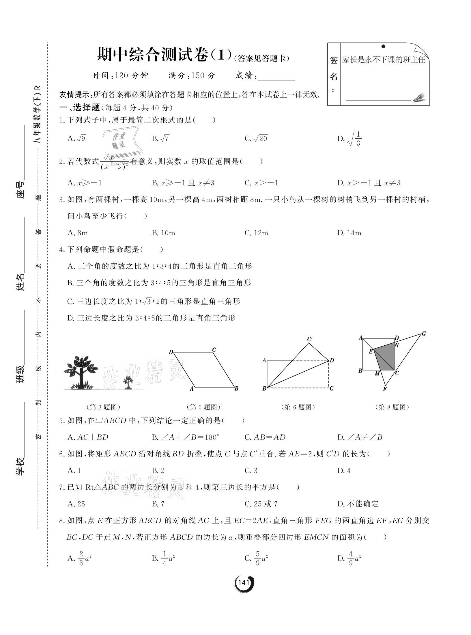 注:目前有些书本章节名称可能整理的还不是很完善,但都是按照顺序排列的,请同学们按照顺序仔细查找。练习册 2021年三点一测课堂作业本八年级数学下册人教版 答案主要是用来给同学们做完题方便对答案用的,请勿直接抄袭。