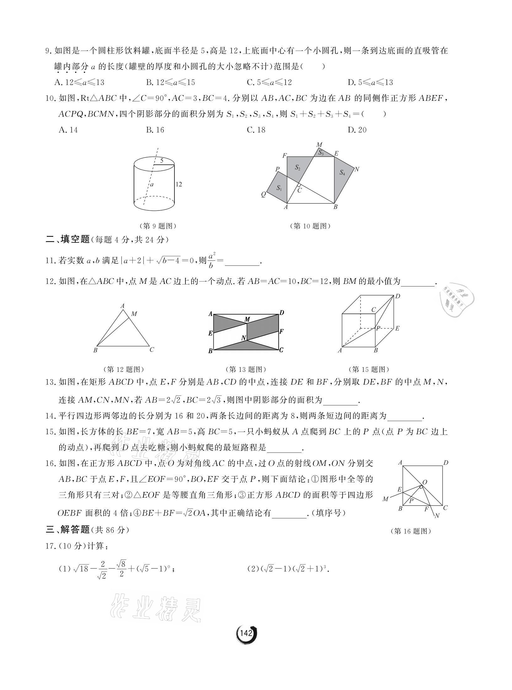 注:目前有些书本章节名称可能整理的还不是很完善,但都是按照顺序排列的,请同学们按照顺序仔细查找。练习册 2021年三点一测课堂作业本八年级数学下册人教版 答案主要是用来给同学们做完题方便对答案用的,请勿直接抄袭。