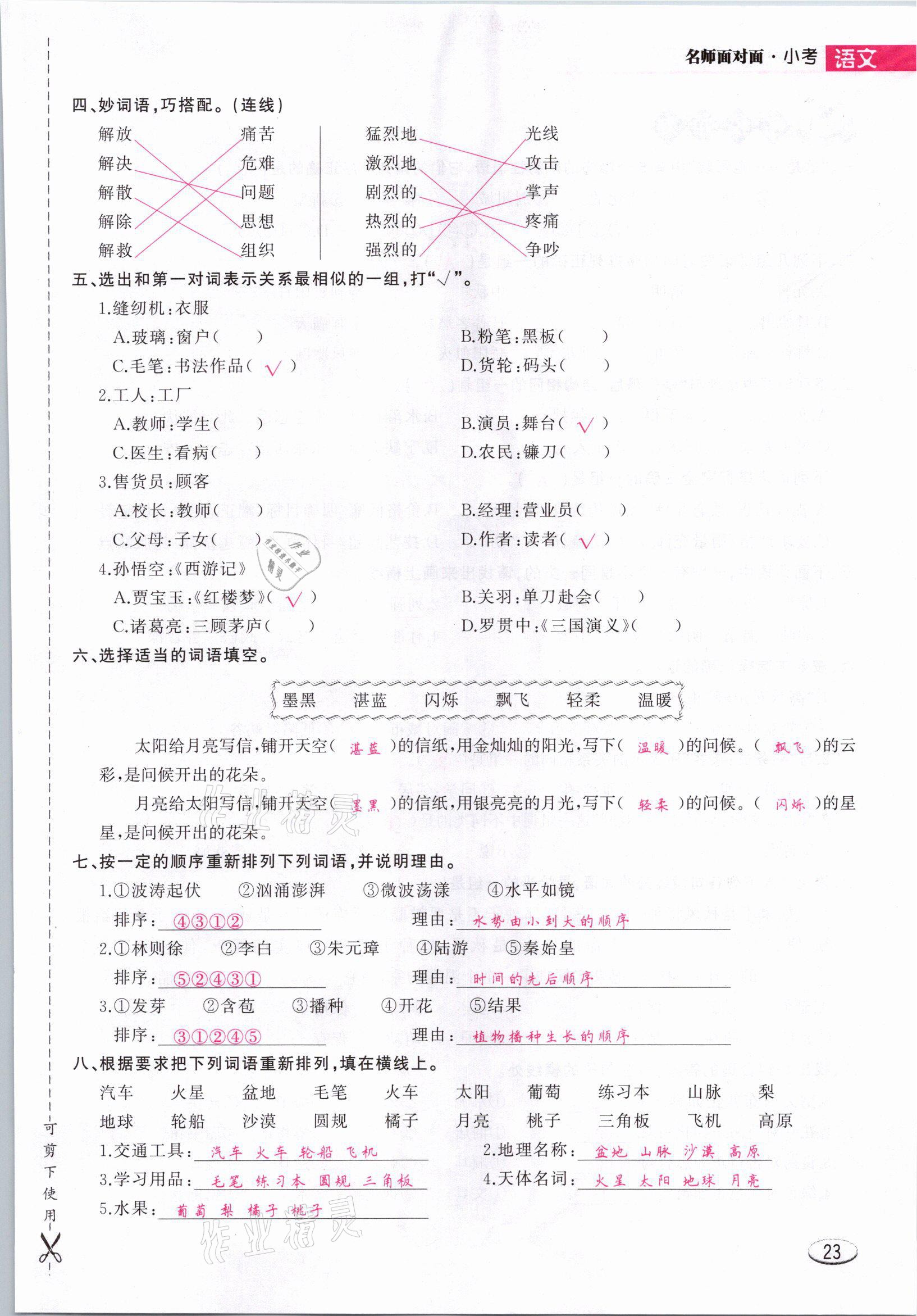 注:目前有些书本章节名称可能整理的还不是很完善,但都是按照顺序排列的,请同学们按照顺序仔细查找。练习册 2021年名师面对面小考满分特训方案语文山西专版 答案主要是用来给同学们做完题方便对答案用的,请勿直接抄袭。