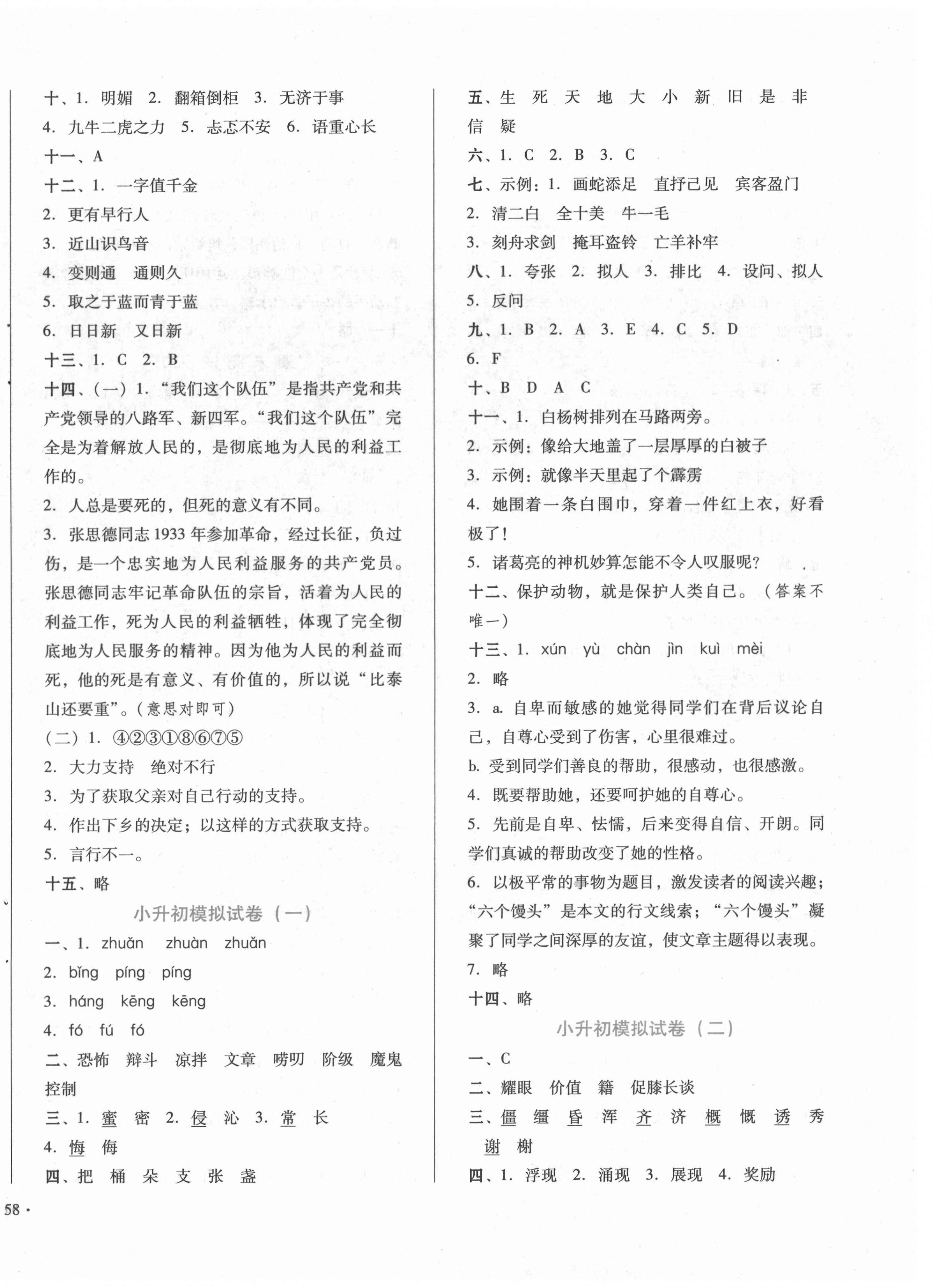 2021年中育1号金卷分类测试卷六年级语文下册人教版