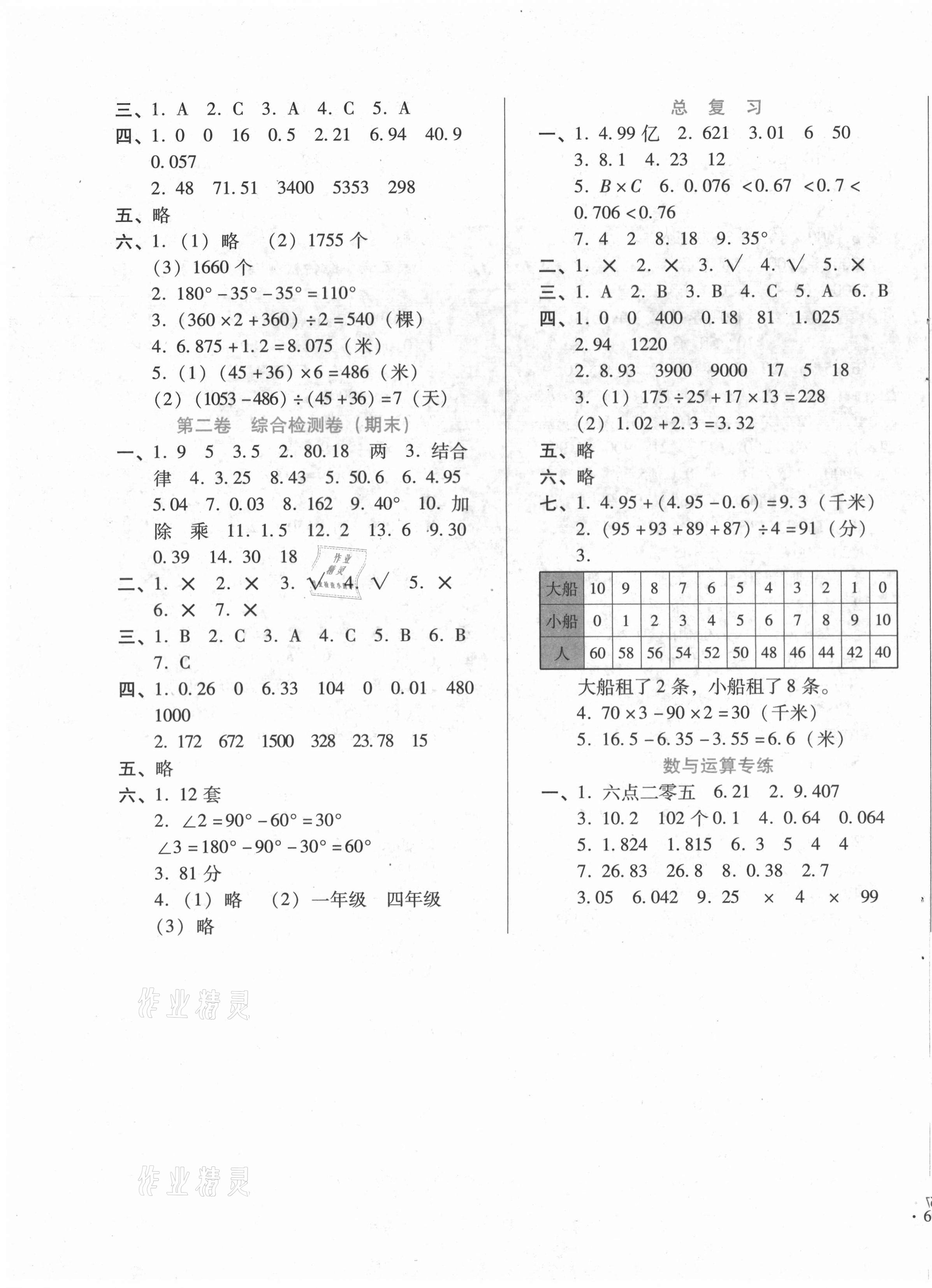 2021年中育1号金卷分类测试卷四年级数学下册人教版
