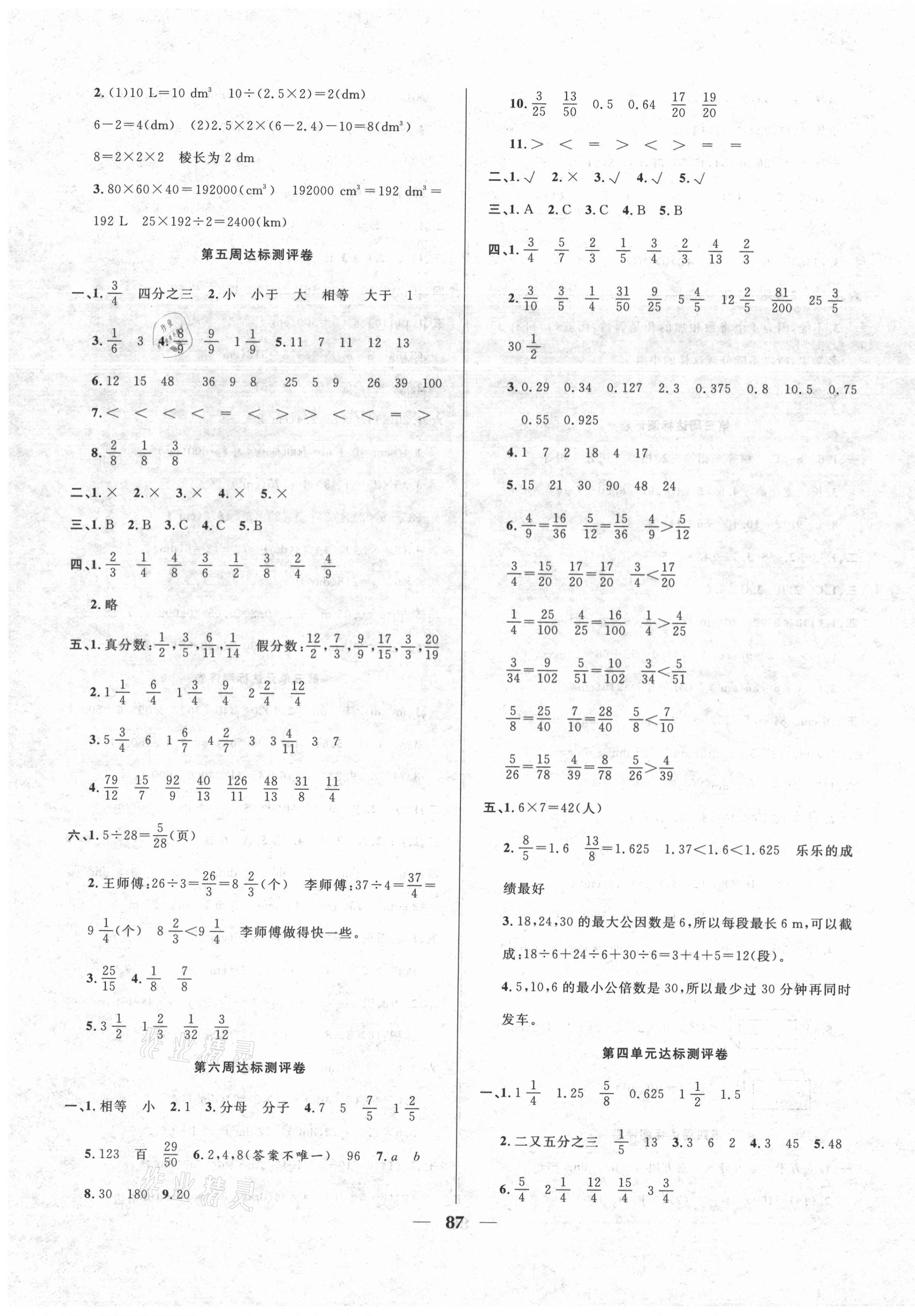 注:目前有些书本章节名称可能整理的还不是很完善,但都是按照顺序排列的,请同学们按照顺序仔细查找。练习册 2021年优等生全方位优化卷王五年级数学下册人教版 答案主要是用来给同学们做完题方便对答案用的,请勿直接抄袭。