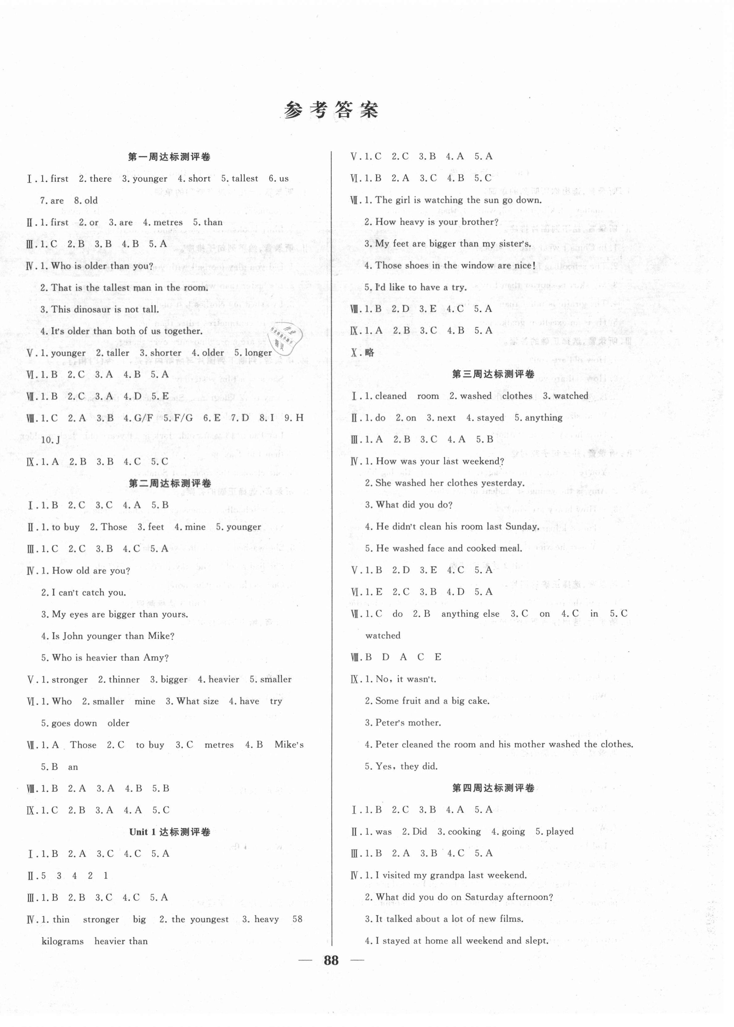 注:目前有些书本章节名称可能整理的还不是很完善,但都是按照顺序排列的,请同学们按照顺序仔细查找。练习册 2021年优等生全方位优化卷王六年级英语下册人教PEP版 答案主要是用来给同学们做完题方便对答案用的,请勿直接抄袭。