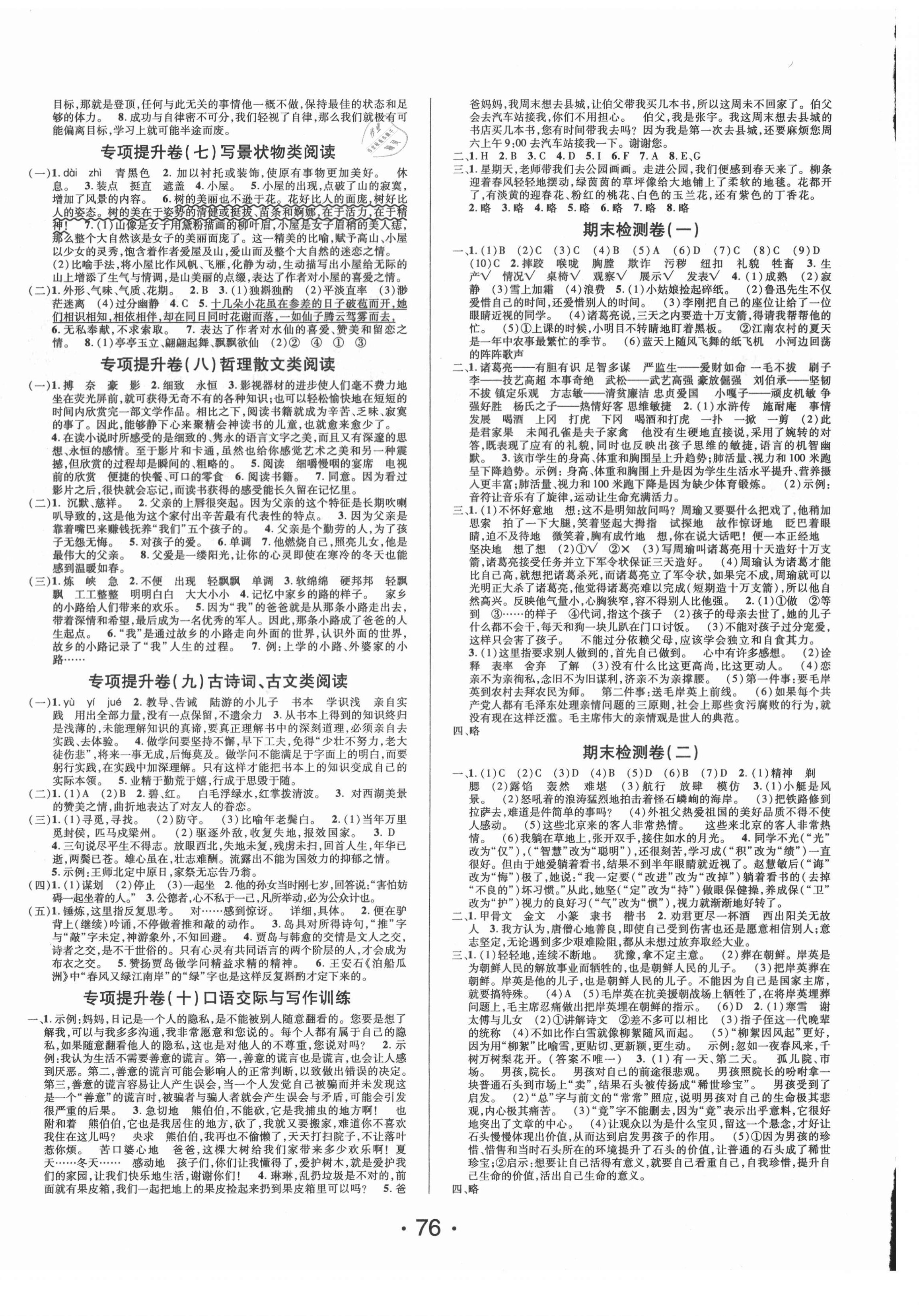 注:目前有些书本章节名称可能整理的还不是很完善,但都是按照顺序排列的,请同学们按照顺序仔细查找。练习册 2021年素养课堂提升卷五年级语文下册人教版 答案主要是用来给同学们做完题方便对答案用的,请勿直接抄袭。