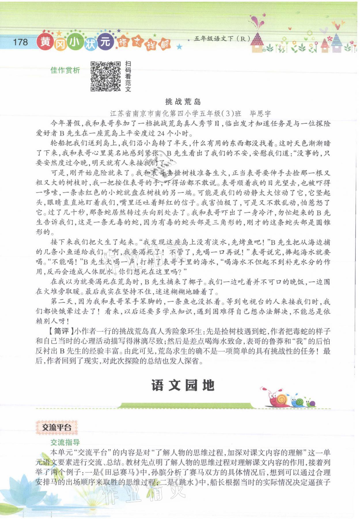 2021年黄冈小状元语文详解五年级语文下册人教版