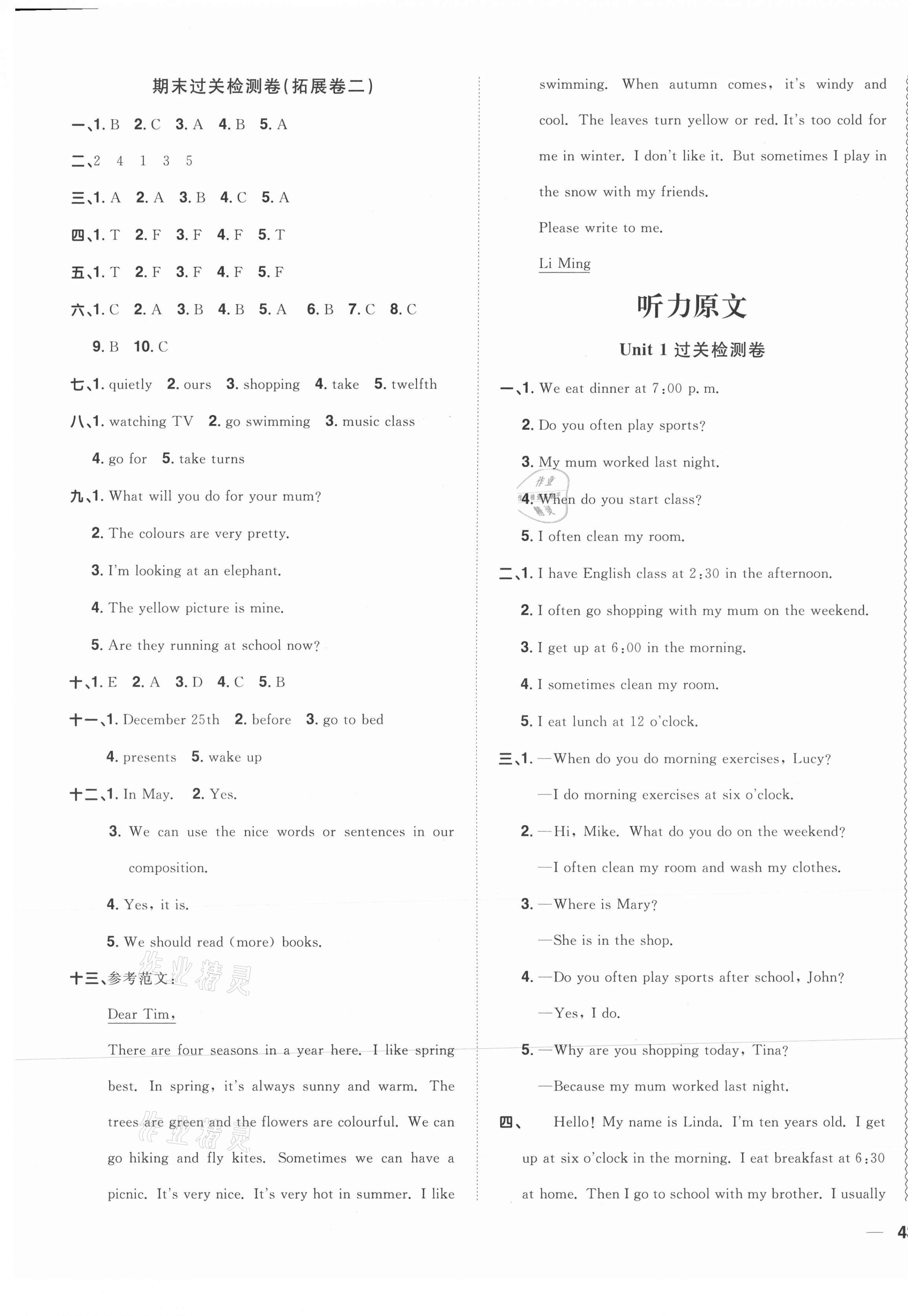 2021年阳光同学全优达标好卷五年级英语下册人教PEP版浙江专版