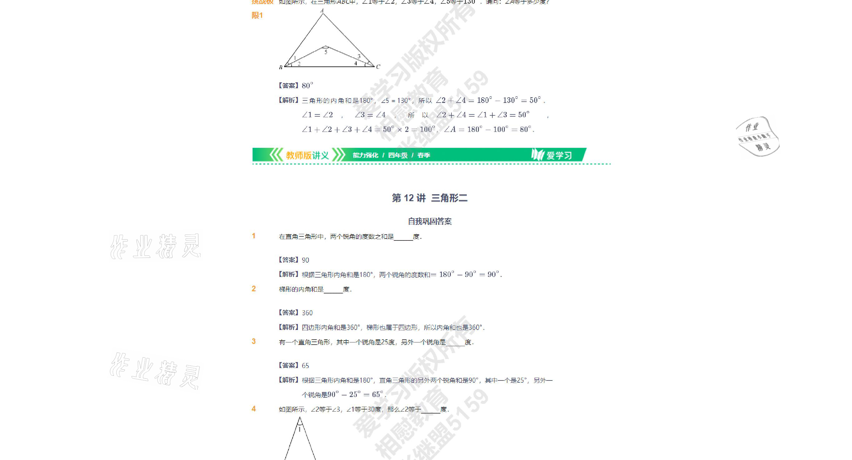 注:目前有些书本章节名称可能整理的还不是很完善,但都是按照顺序排列的,请同学们按照顺序仔细查找。练习册 2021年爱学习数学四年级下册苏教版能力强化体系首都师范大学出版社 答案主要是用来给同学们做完题方便对答案用的,请勿直接抄袭。