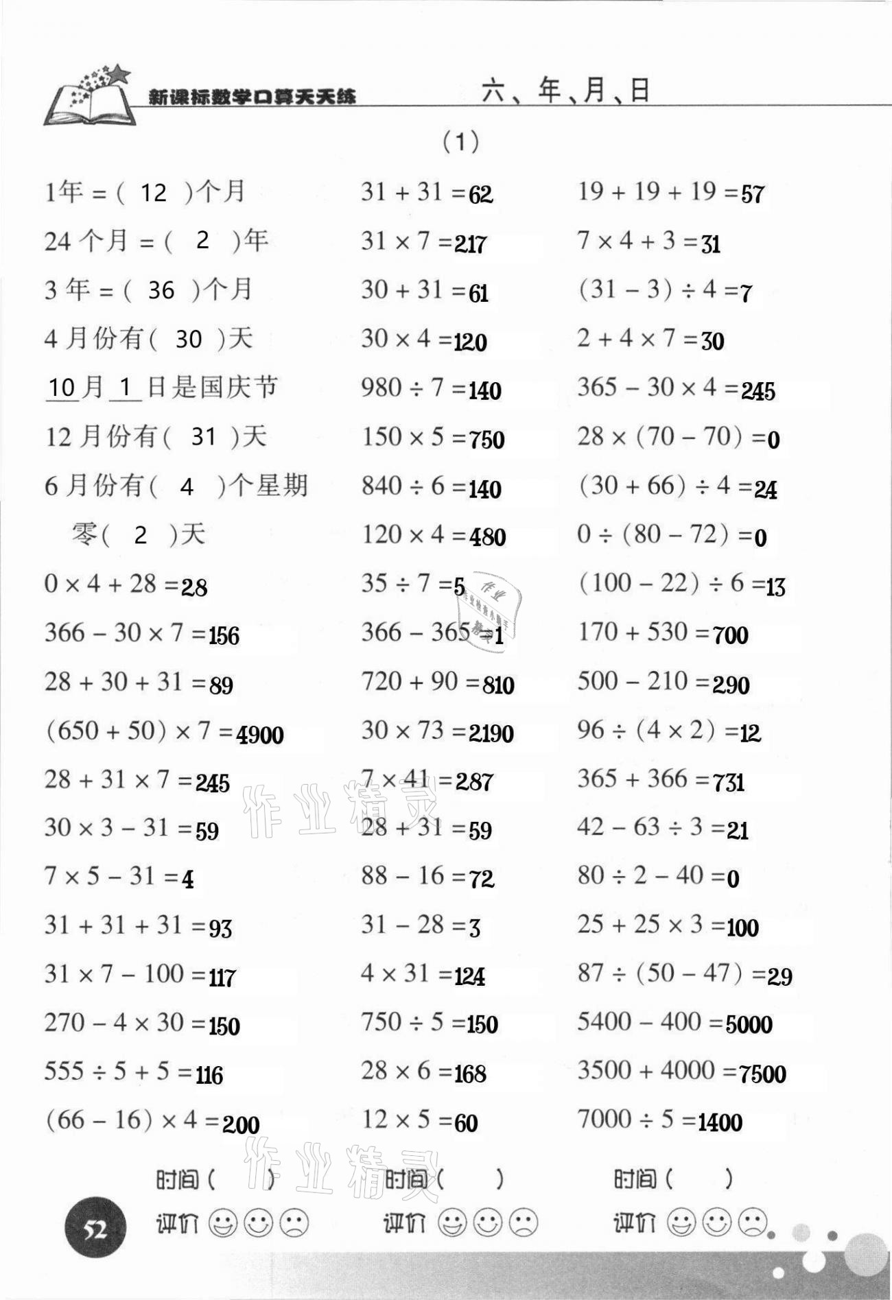 注:目前有些书本章节名称可能整理的还不是很完善,但都是按照顺序排列的,请同学们按照顺序仔细查找。练习册 2021年新课标数学口算天天练三年级下册人教版 答案主要是用来给同学们做完题方便对答案用的,请勿直接抄袭。