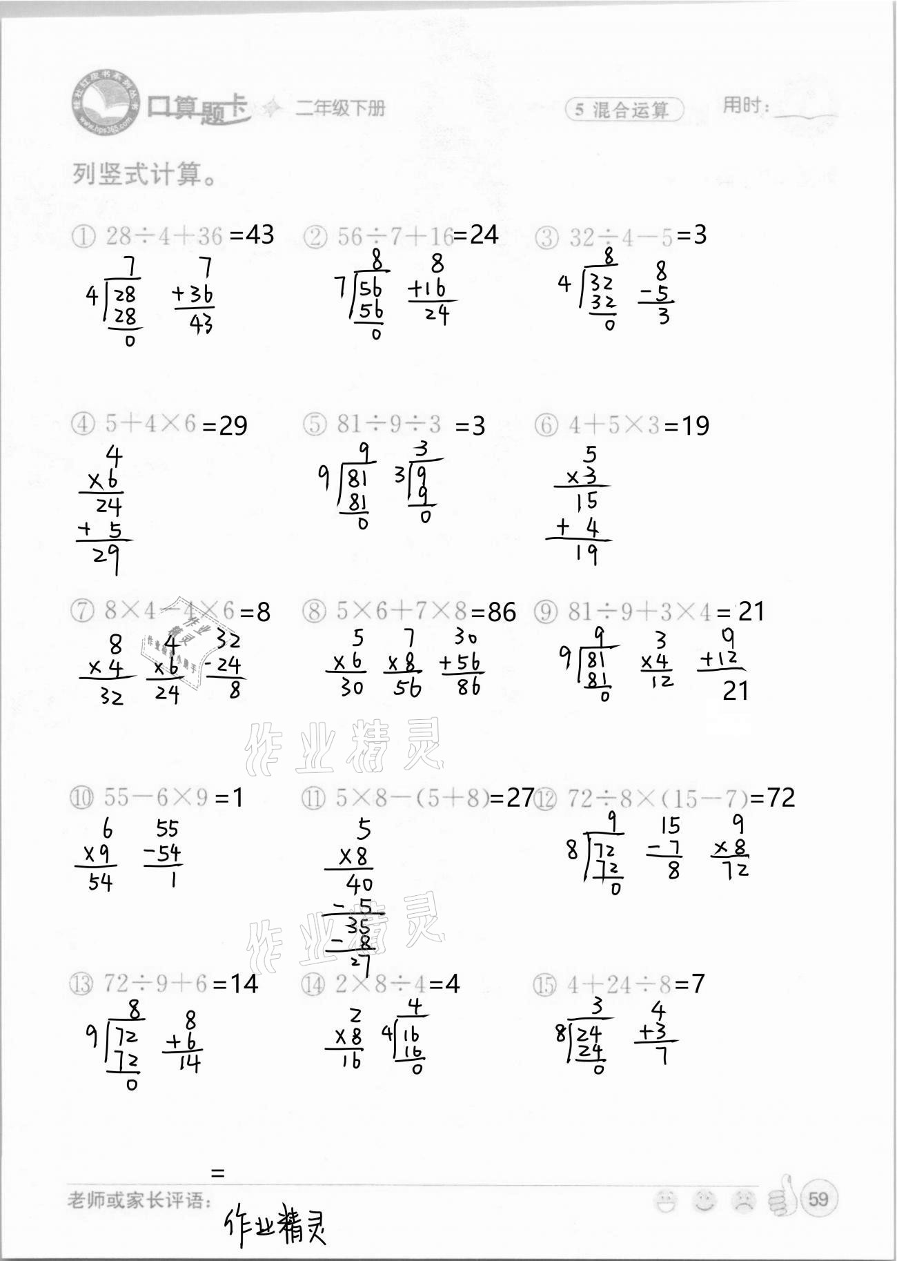 2021年桂壮红皮书口算题卡二年级下册人教版