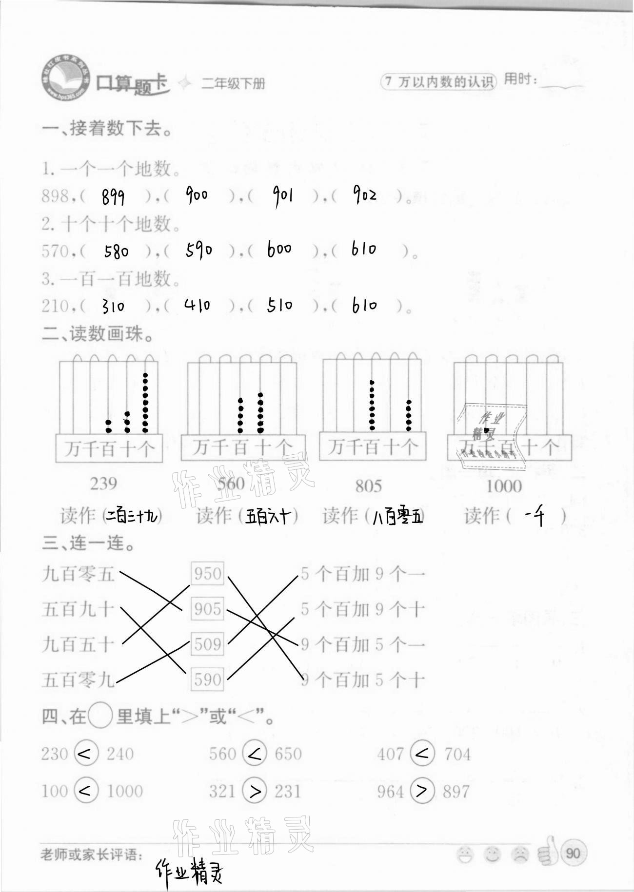 2021年桂壮红皮书口算题卡二年级下册人教版