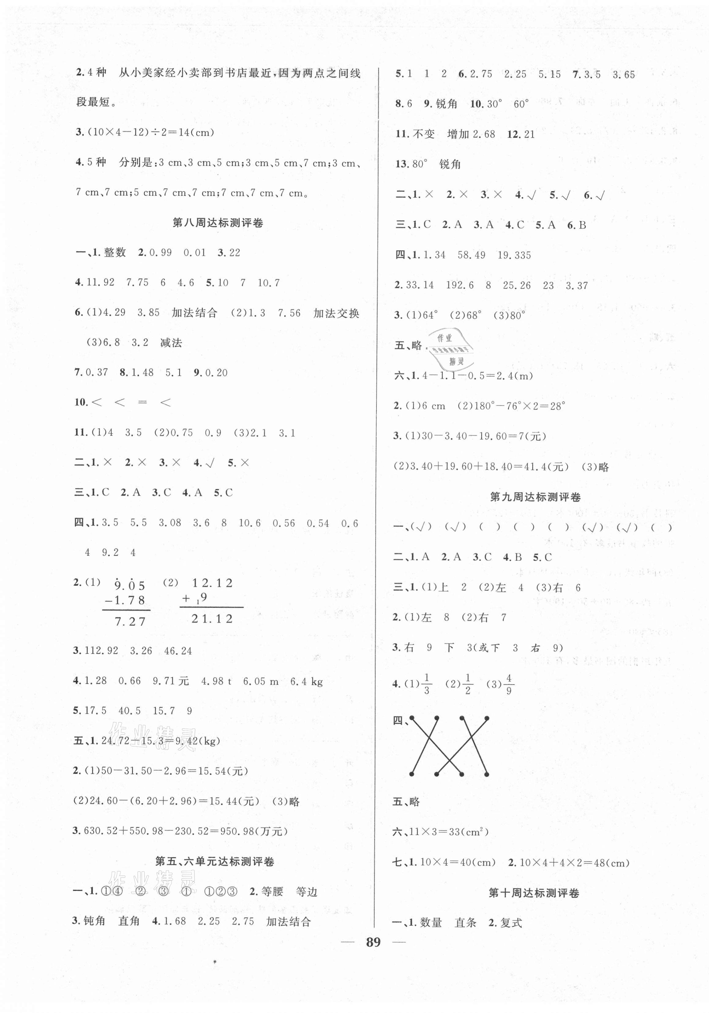 注:目前有些书本章节名称可能整理的还不是很完善,但都是按照顺序排列的,请同学们按照顺序仔细查找。练习册 2021年优等生全方位优化卷王四年级数学下册人教版 答案主要是用来给同学们做完题方便对答案用的,请勿直接抄袭。