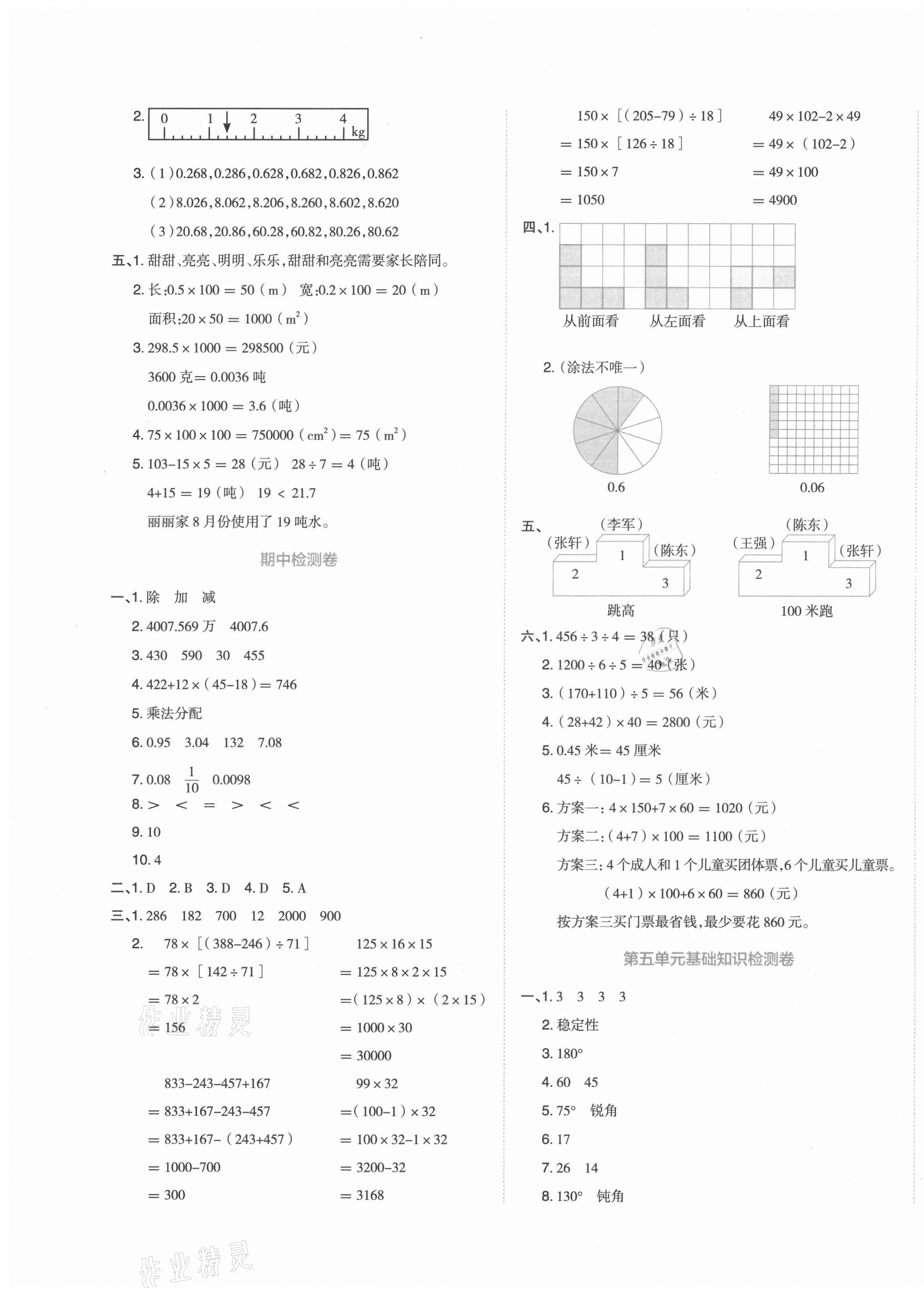 注:目前有些书本章节名称可能整理的还不是很完善,但都是按照顺序排列的,请同学们按照顺序仔细查找。练习册 2021年开学了好卷100分四年级数学下册人教版 答案主要是用来给同学们做完题方便对答案用的,请勿直接抄袭。