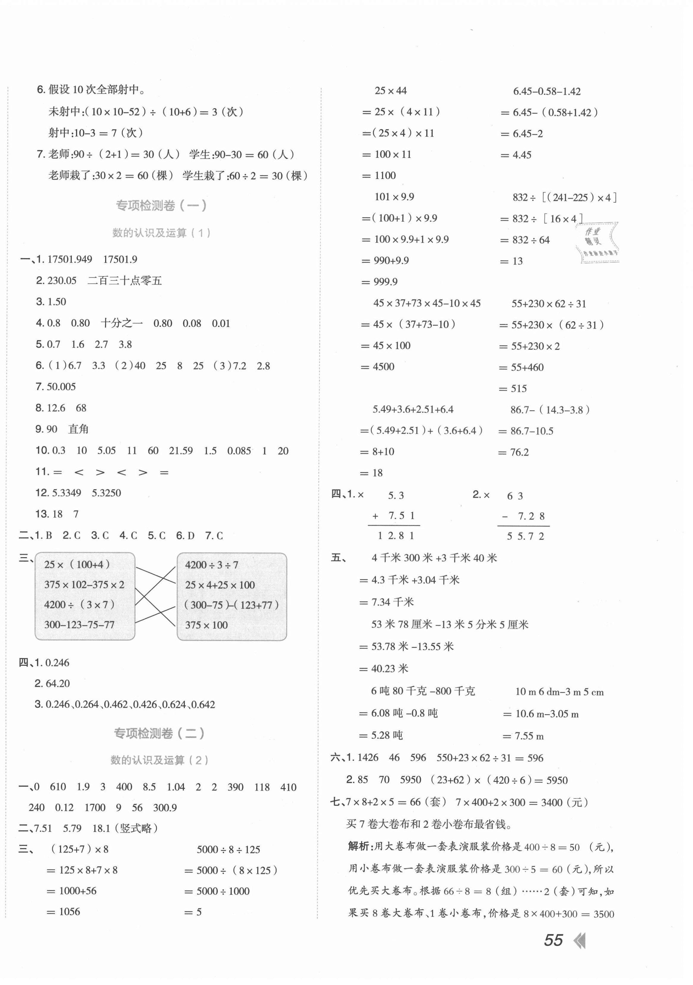 注:目前有些书本章节名称可能整理的还不是很完善,但都是按照顺序排列的,请同学们按照顺序仔细查找。练习册 2021年开学了好卷100分四年级数学下册人教版 答案主要是用来给同学们做完题方便对答案用的,请勿直接抄袭。
