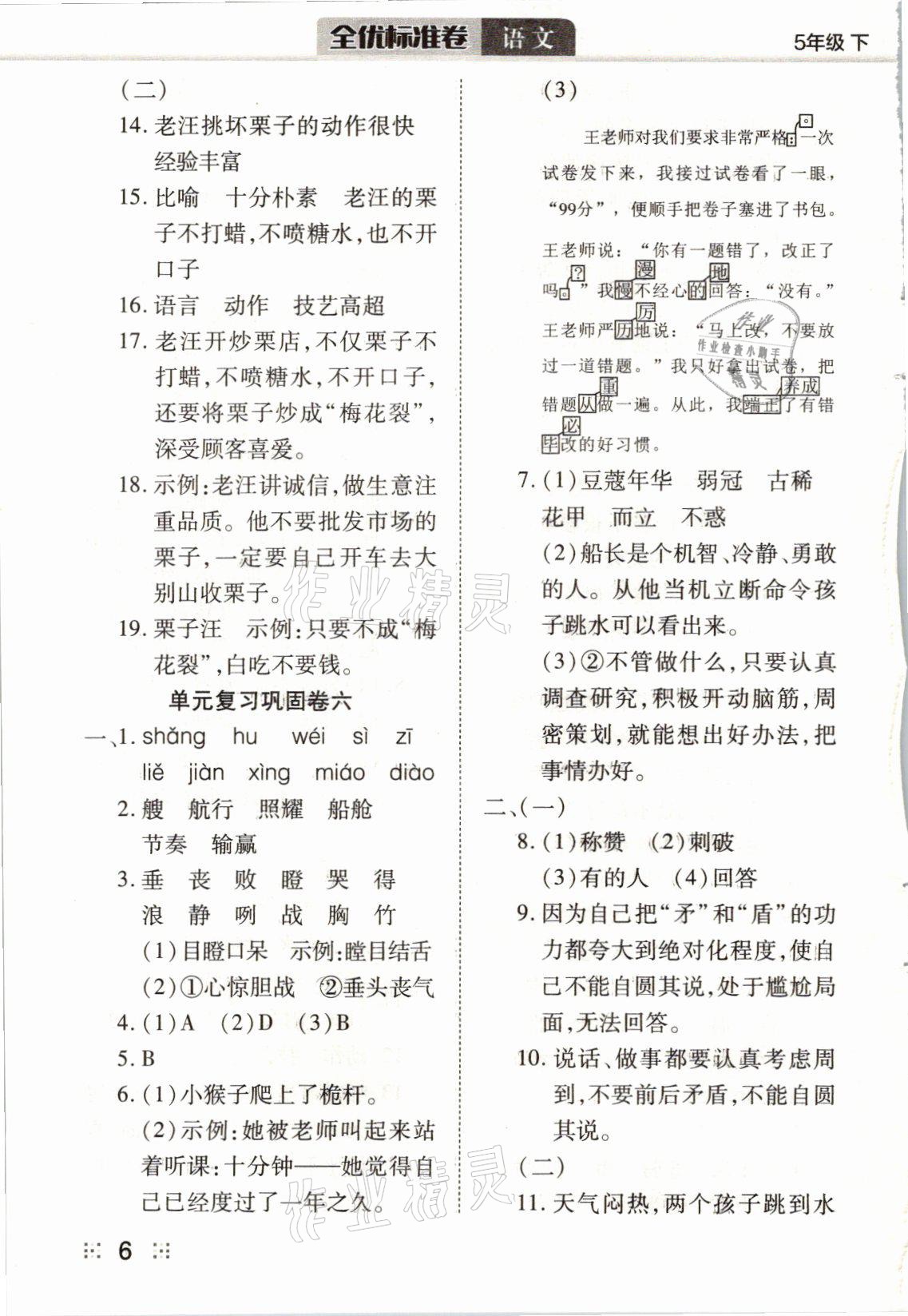 注:目前有些书本章节名称可能整理的还不是很完善,但都是按照顺序排列的,请同学们按照顺序仔细查找。练习册 2021年全优标准卷五年级语文下册人教版 答案主要是用来给同学们做完题方便对答案用的,请勿直接抄袭。