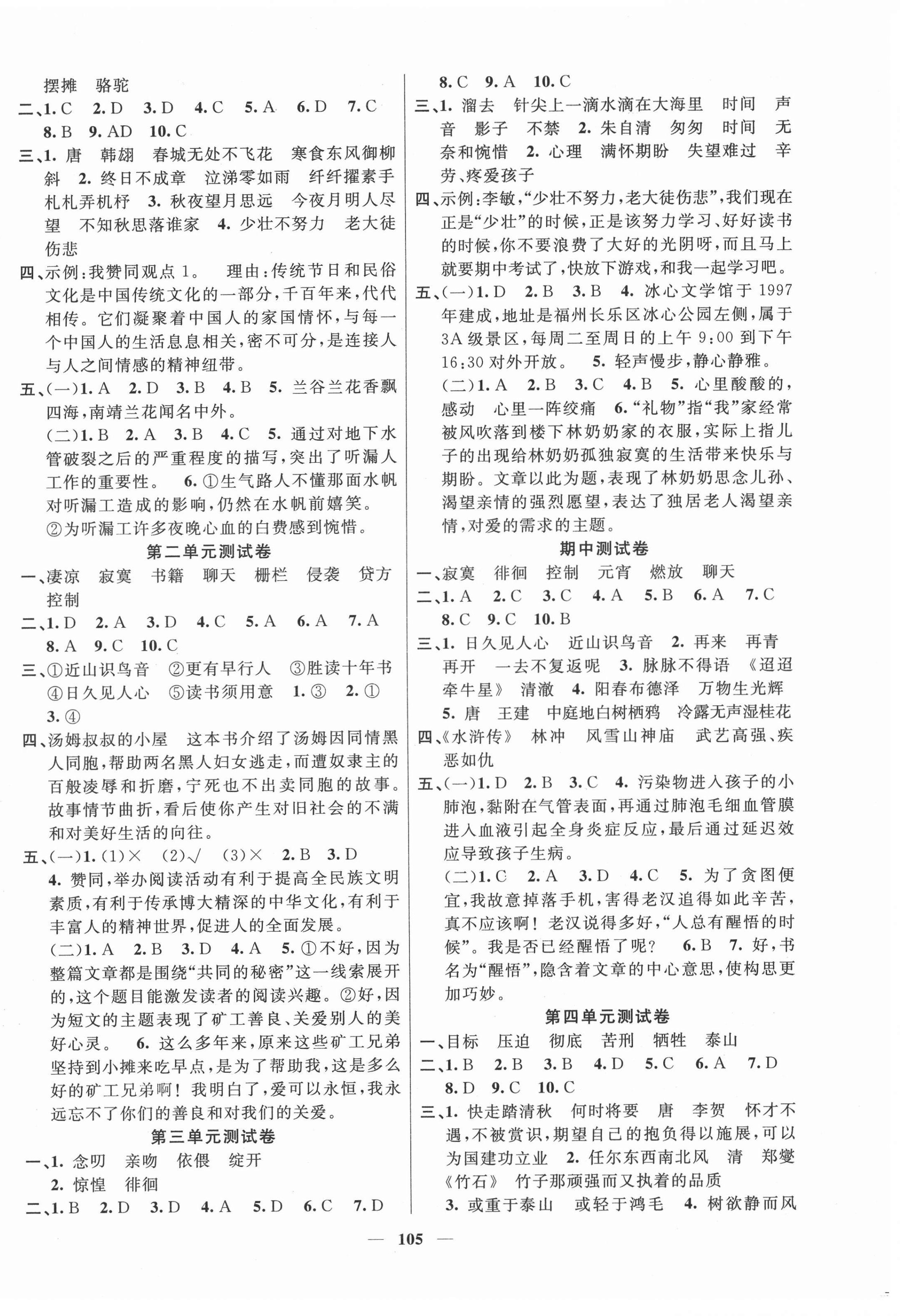 注:目前有些书本章节名称可能整理的还不是很完善,但都是按照顺序排列的,请同学们按照顺序仔细查找。练习册 2021年智慧树同步讲练测六年级语文下册人教版福建专版 答案主要是用来给同学们做完题方便对答案用的,请勿直接抄袭。