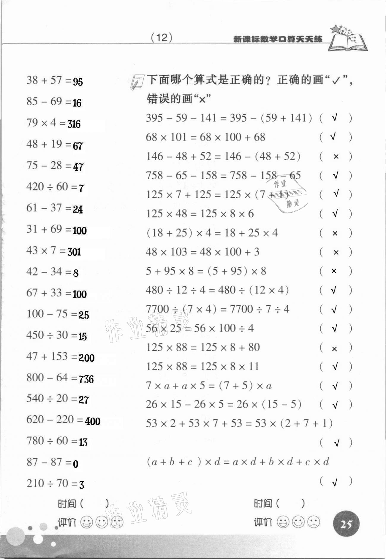 注:目前有些书本章节名称可能整理的还不是很完善,但都是按照顺序排列的,请同学们按照顺序仔细查找。练习册 2021年新课标数学口算天天练四年级下册人教版 答案主要是用来给同学们做完题方便对答案用的,请勿直接抄袭。